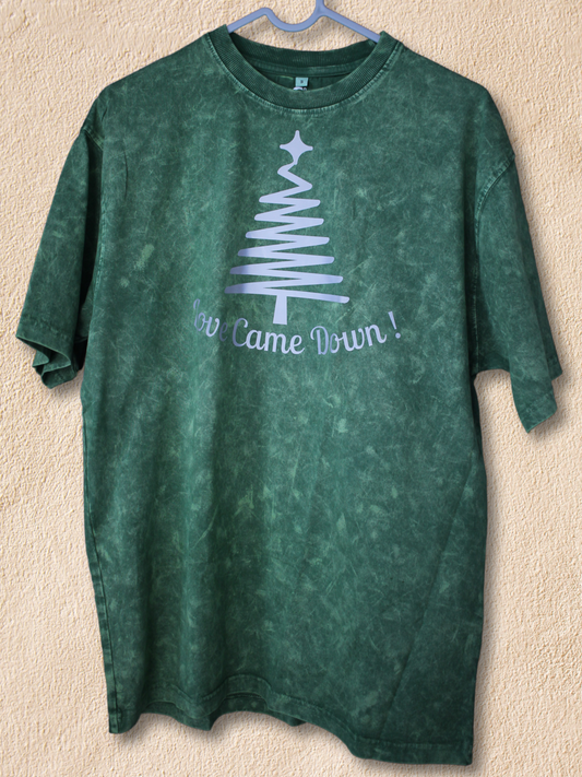 Reflective Print "Love Came Down" Title: Oversized Unisex Christian T-Shirt