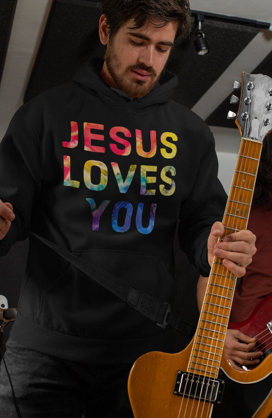 Black "Jesus Loves you" unisex christian hooded sweatshirt
