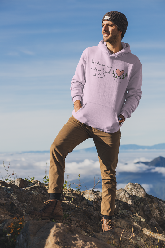 Mild Pink "Create in me a clean heart oh God" unisex christian hooded sweatshirt