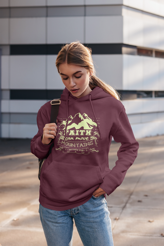 Maroon "Faith can move mountains" unisex christian hooded sweatshirt