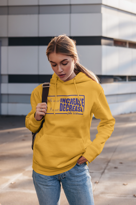 Golden Yellow "He must increase I must decrease" unisex christian hooded sweatshirt