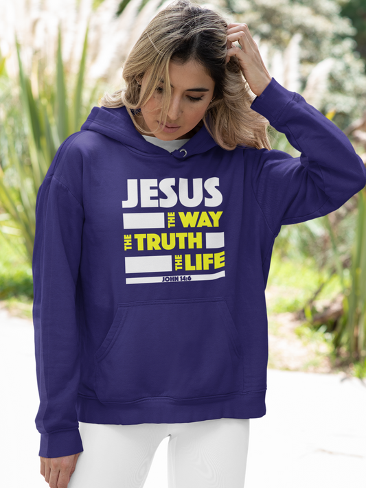 Navy Blue "Jesus - Way, Truth and Life" unisex christian hooded sweatshirt