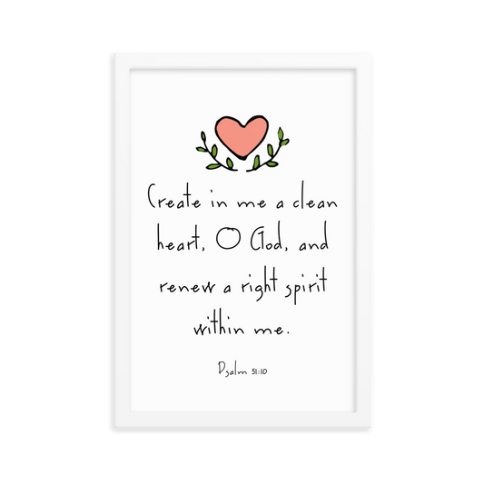 "Create in me a clean heart oh God" Christian Frame (11.7 X 16.5 inches)