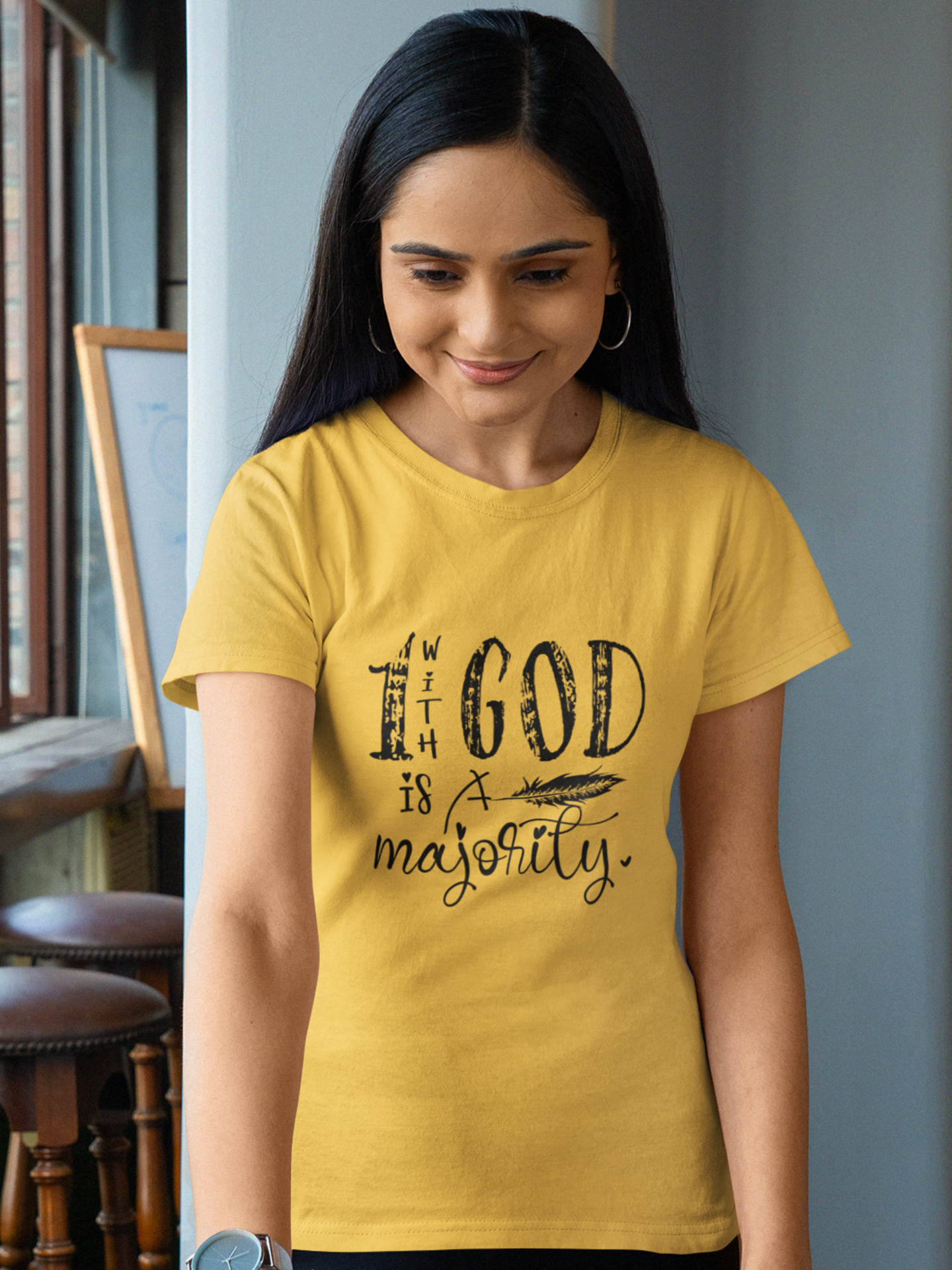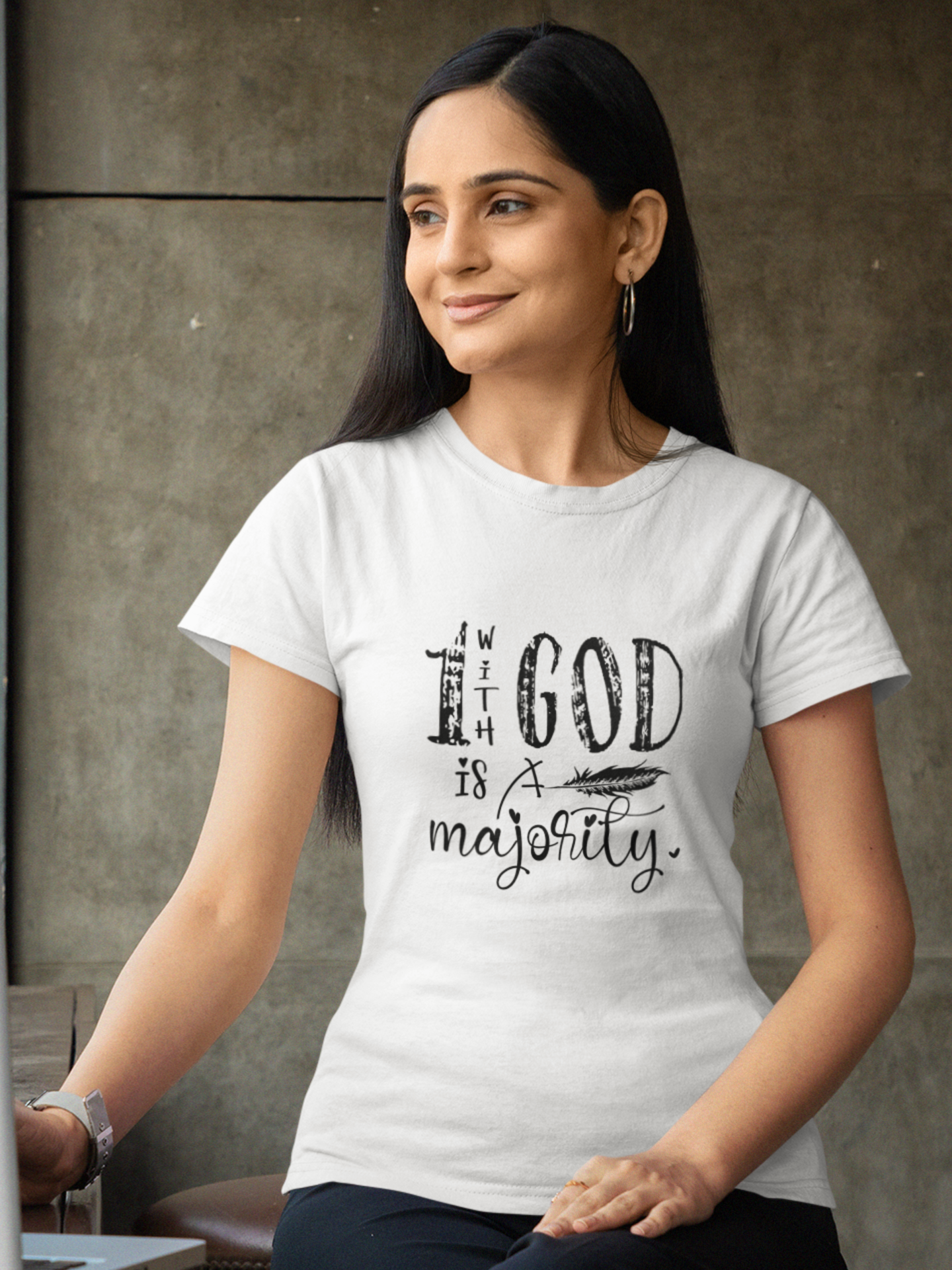 "1 with God is a Majority" women's Christian t-shirt
