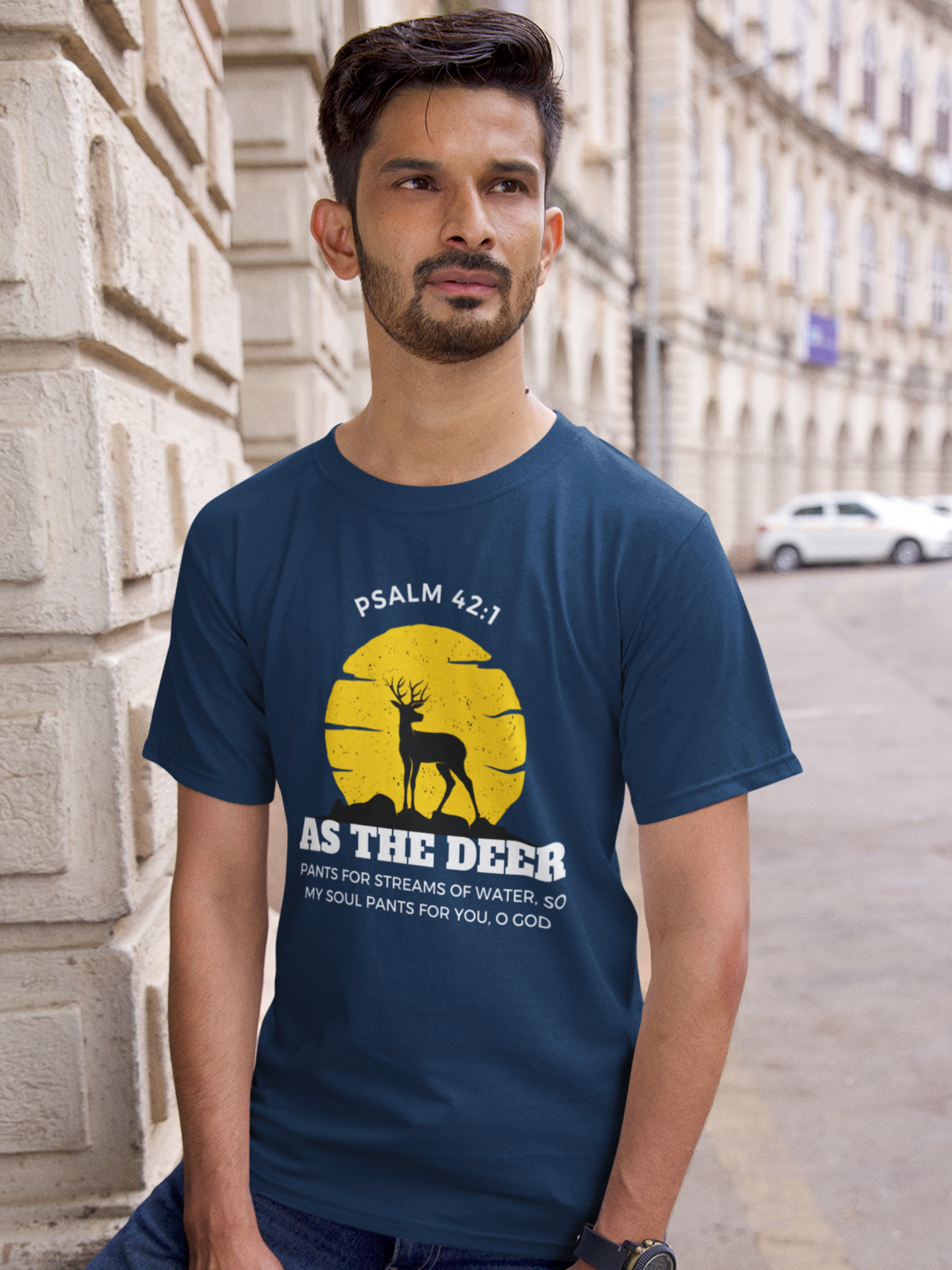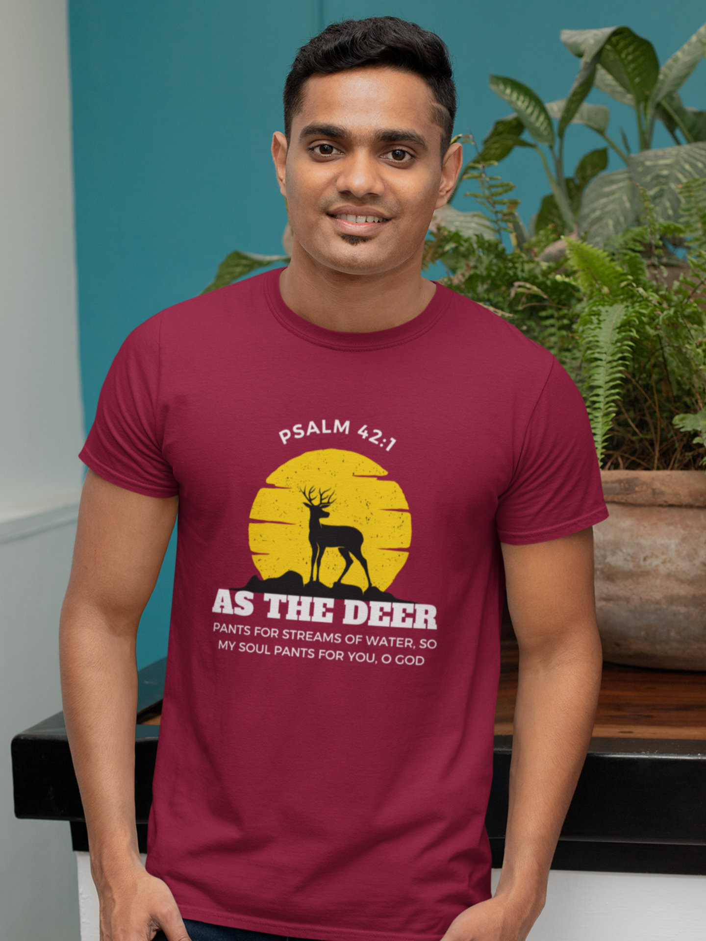Dive into the depths of devotion with our "As the Deer Pants" T-shirt, featuring the complete verse from Psalm 42:1: