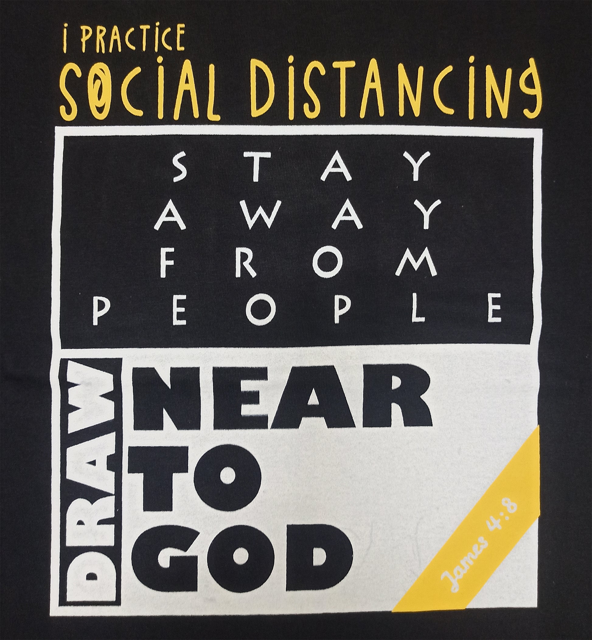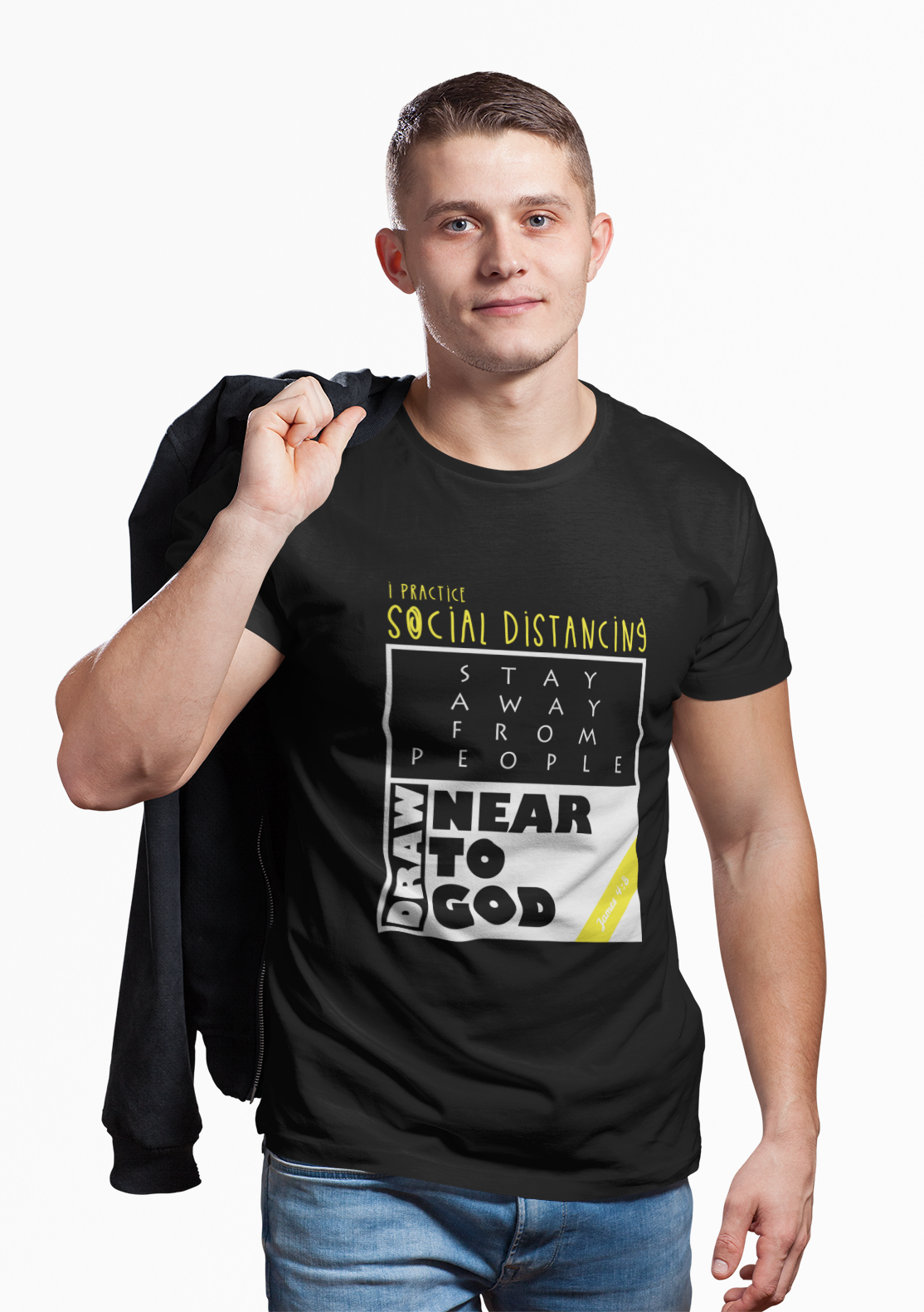 Social distancing means staying at least six feet away from another person to be cautious in our fight against the pandemic. But, in no way it stops us from being close to God. Let us spread some awareness along with the Word of God and let us draw ourselves with a sincere heart with this t-shirt.