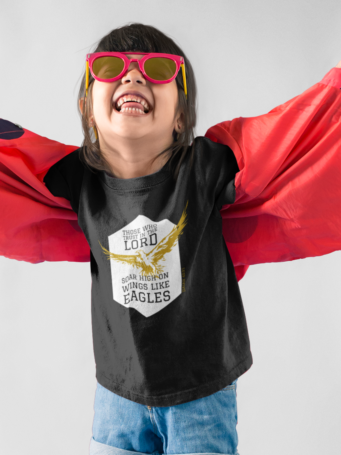 Black "Soar high on wings like Eagles" girls christian t-shirt