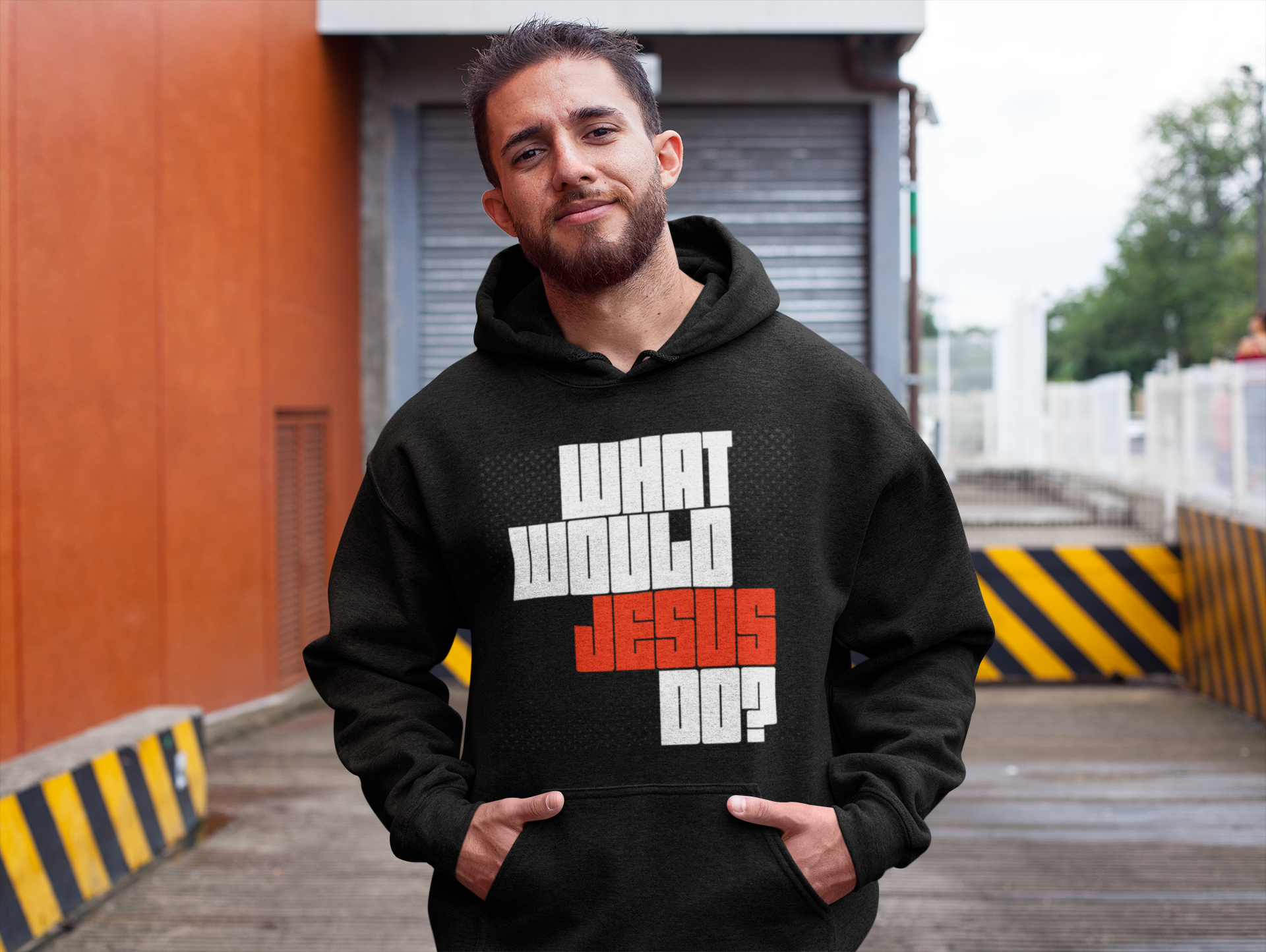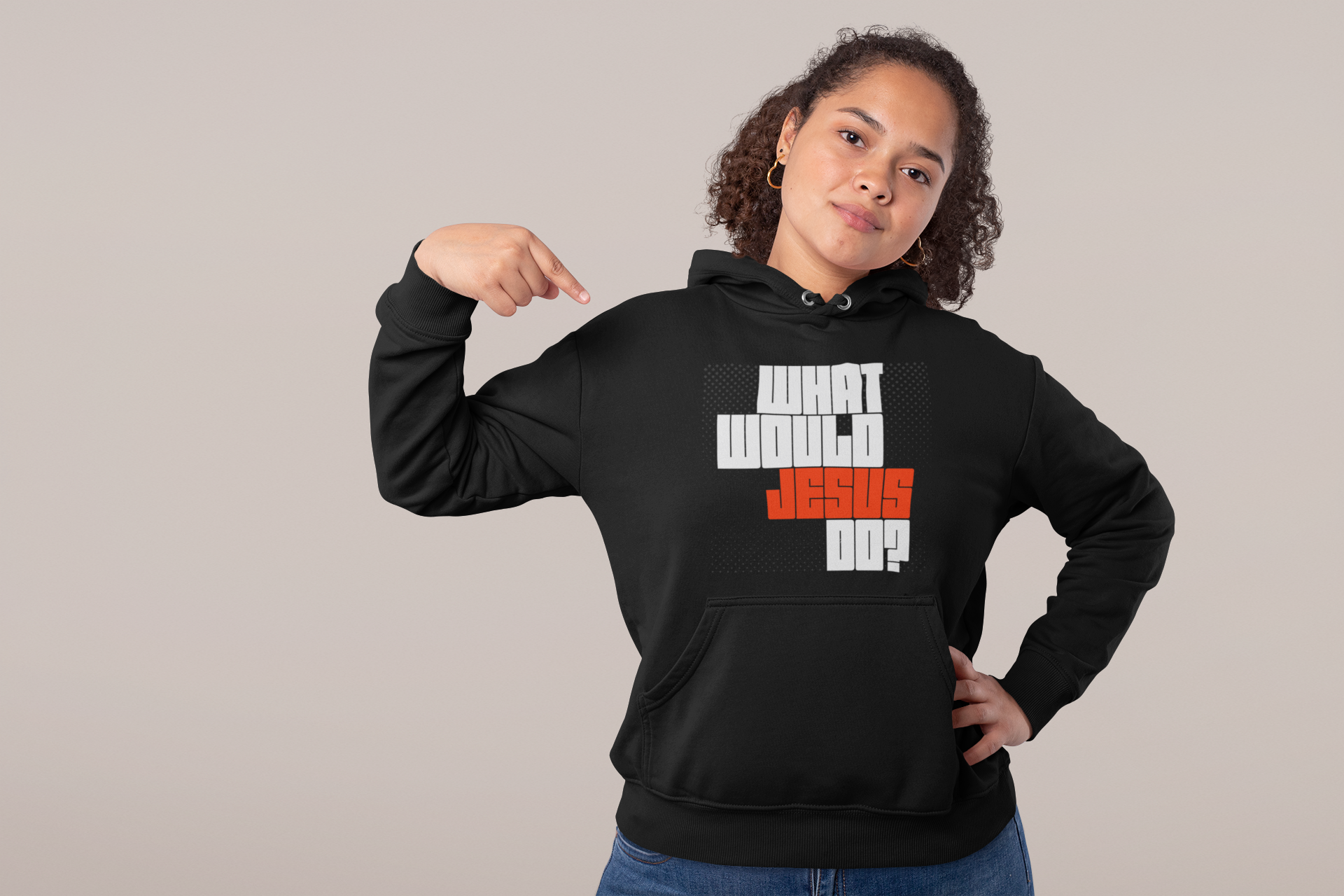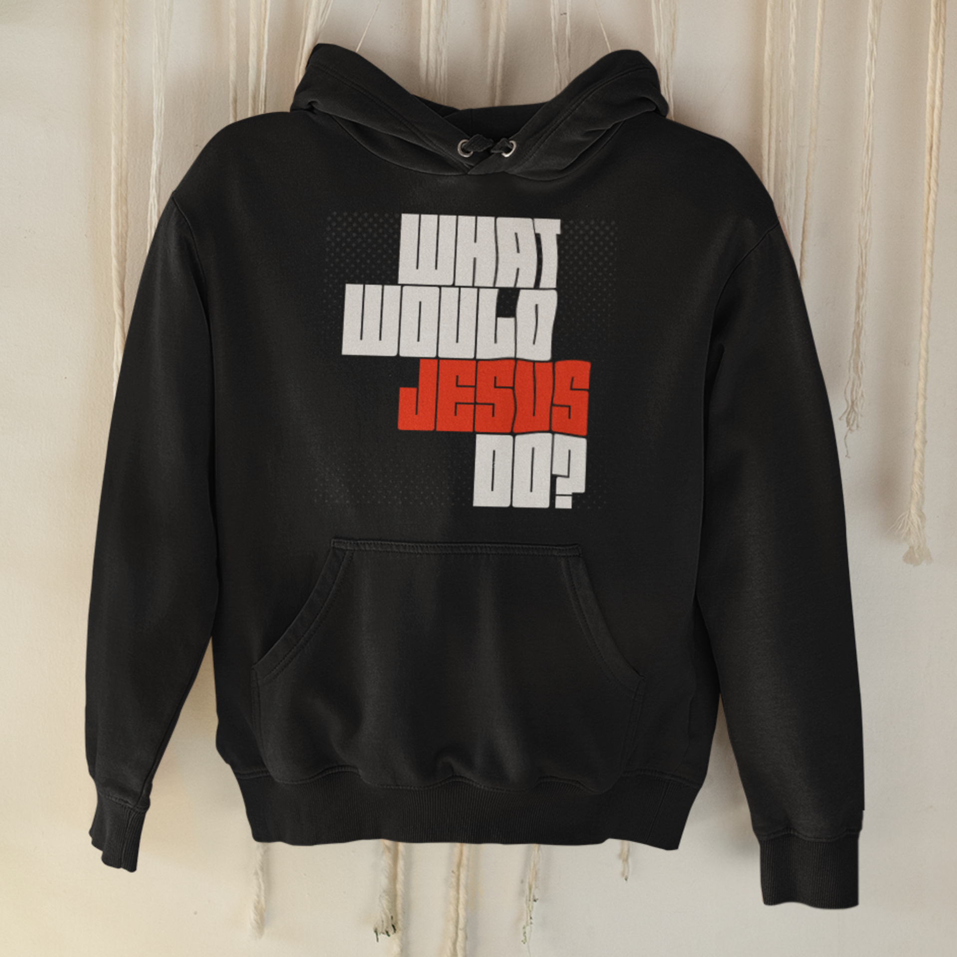 Black "What would Jesus do?" unisex christian hooded sweatshirt