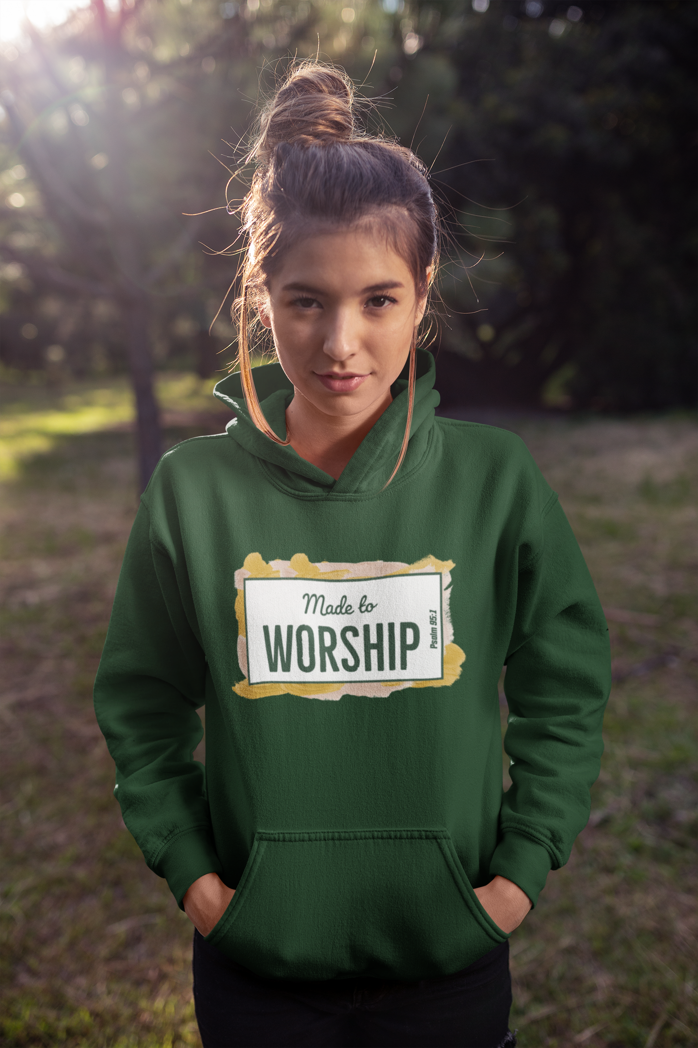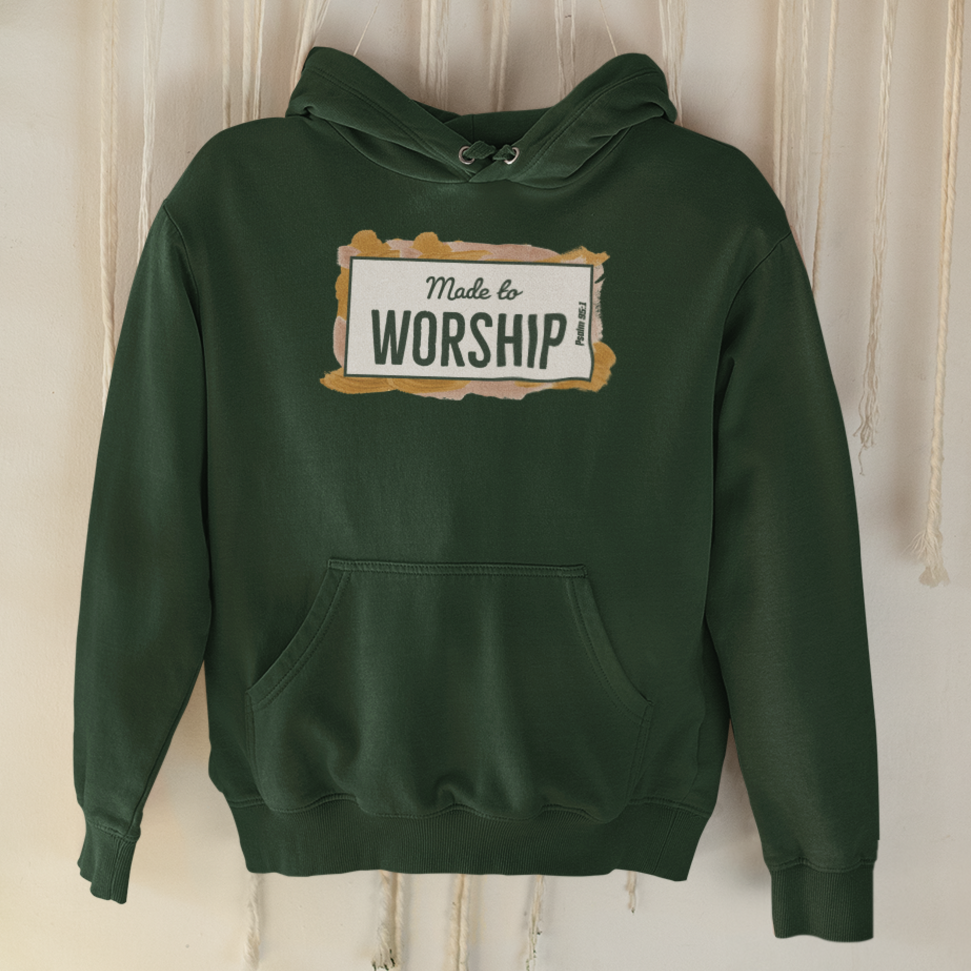 Bottle Green "Made to worship" unisex christian hooded sweatshirt