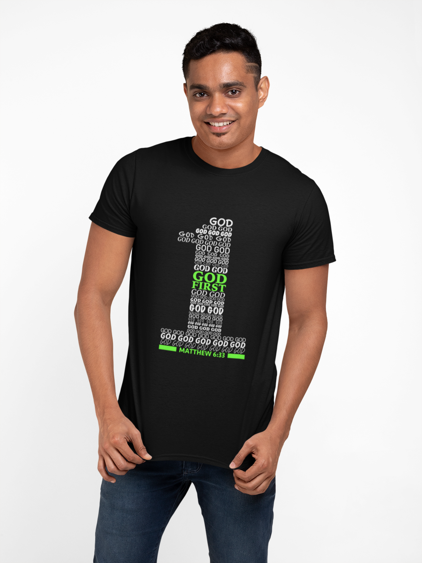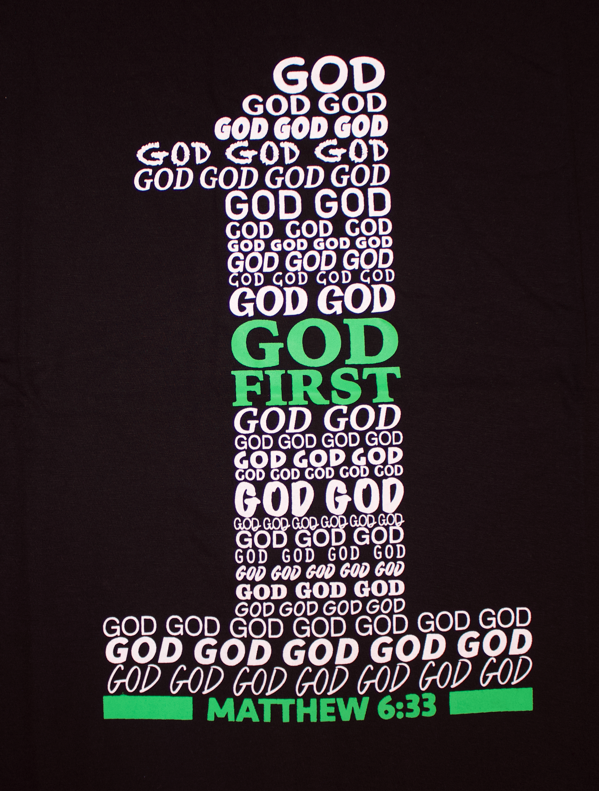 Our God First T-shirt will display and remind us to give importance to God First when we wear. This T-shirt is also available in Turquoise Blue color.