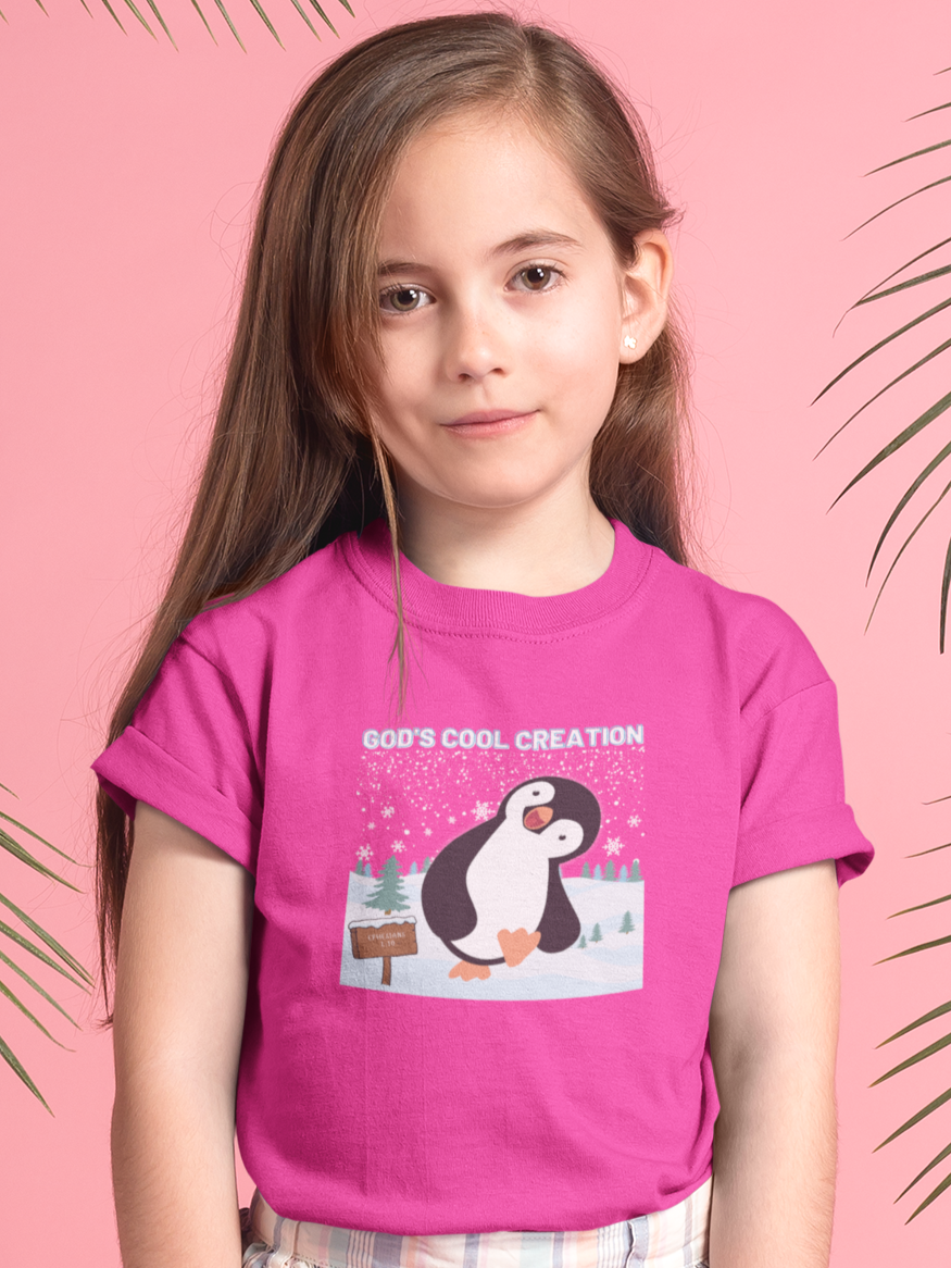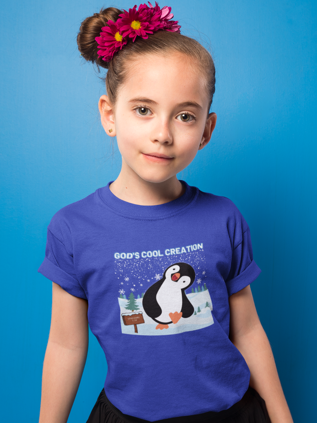 Let your little one celebrate God's creativity with our adorable "God's Cool Creation" Penguin T-Shirt! This fun and vibrant design, featuring a cute penguin in a snowy scene, is a delightful reminder that we are all God's masterpiece, created for a purpose. Inspired by Ephesians 2:10, this t-shirt will keep your child cozy and stylish while sharing a beautiful message. Perfect for every adventure, whether it's a day at school or playtime in the park!