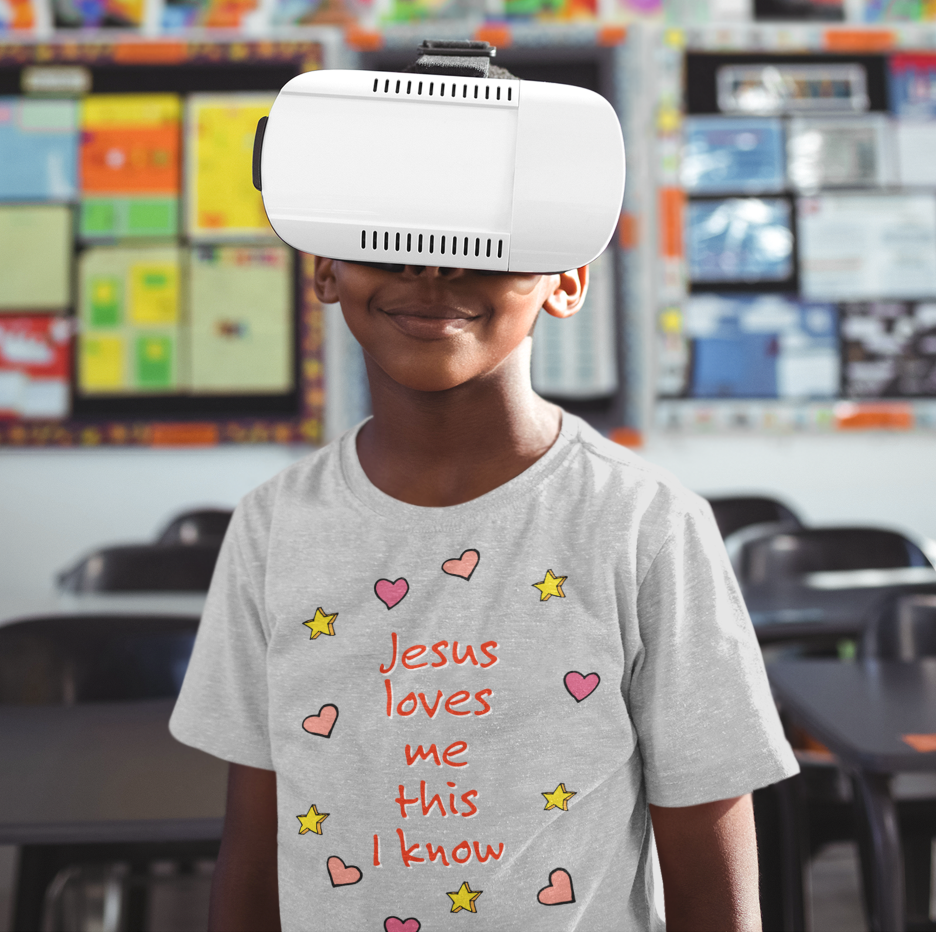 Grey "Jesus loves me this I know" boys christian t-shirt
