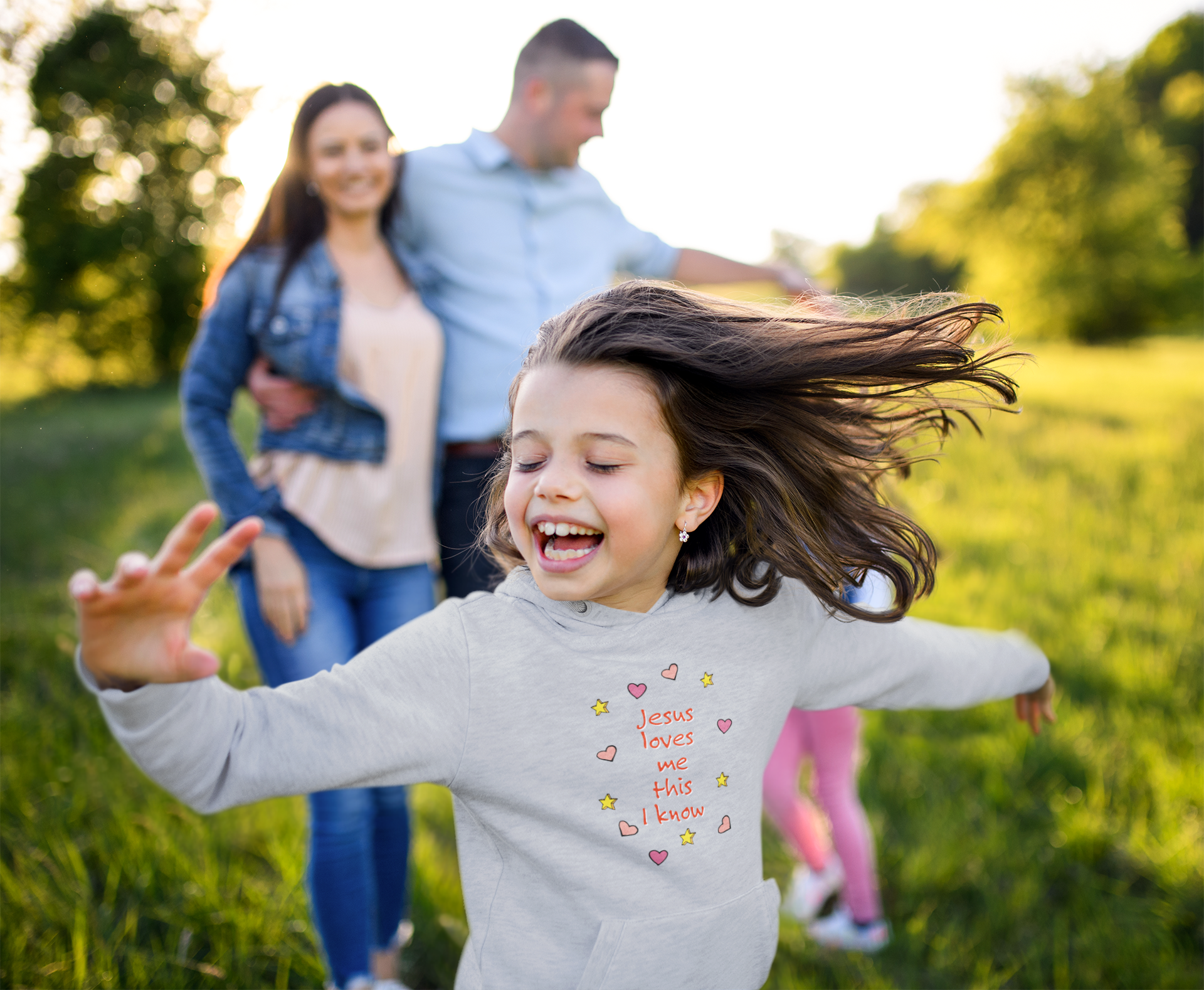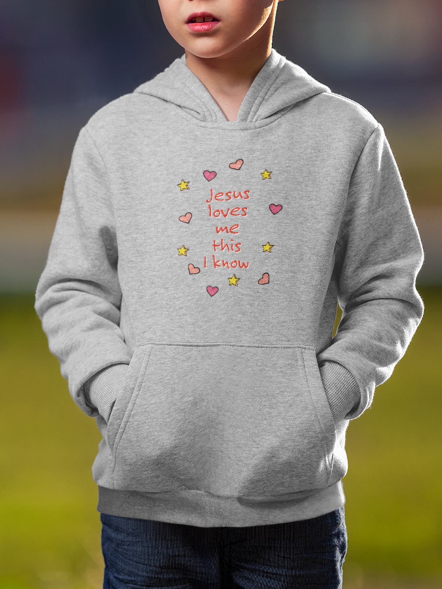 Grey "Jesus loves me this I know" kids christian hooded sweatshirt