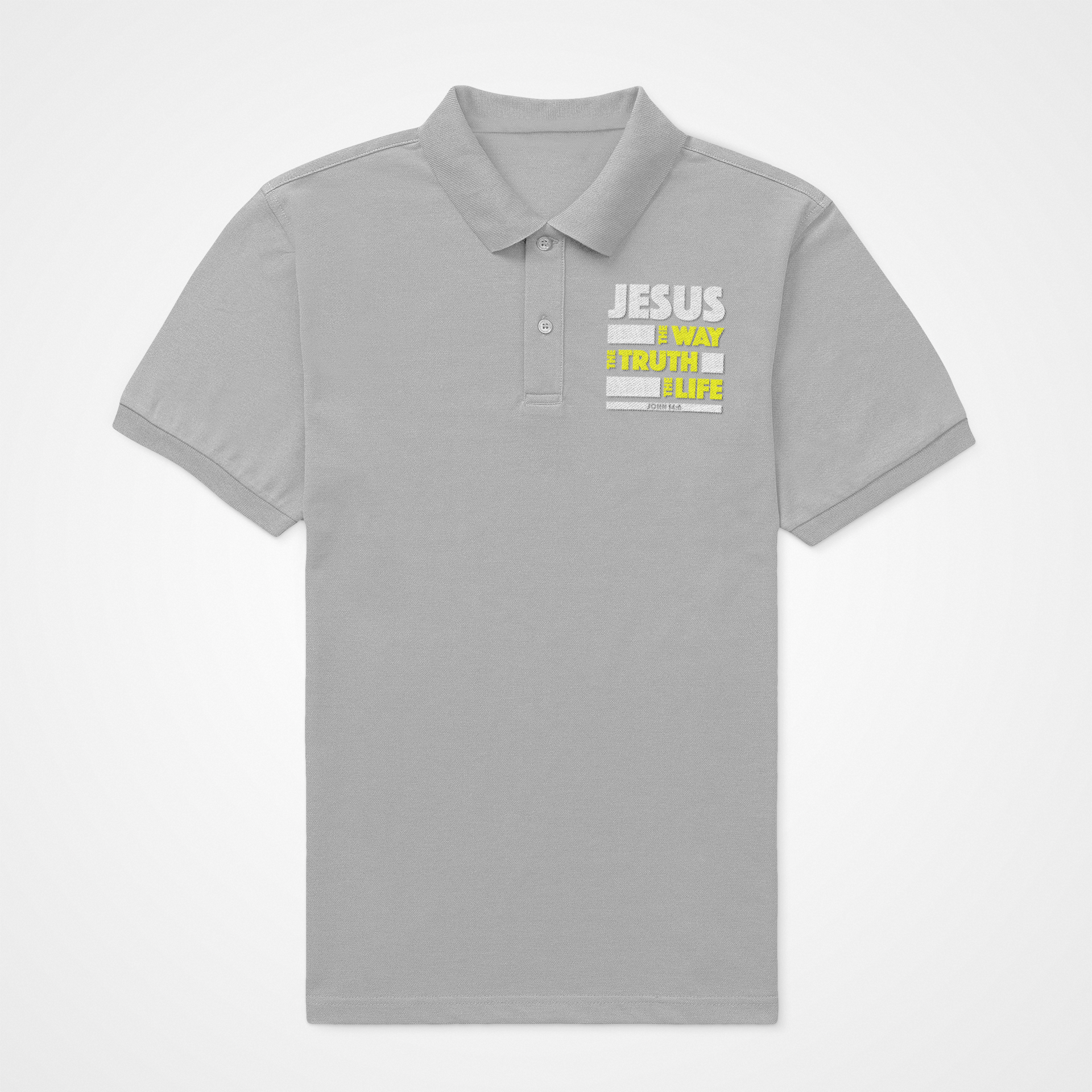 Grey "Jesus - Way, Truth and Life" unisex christian polo t-shirt