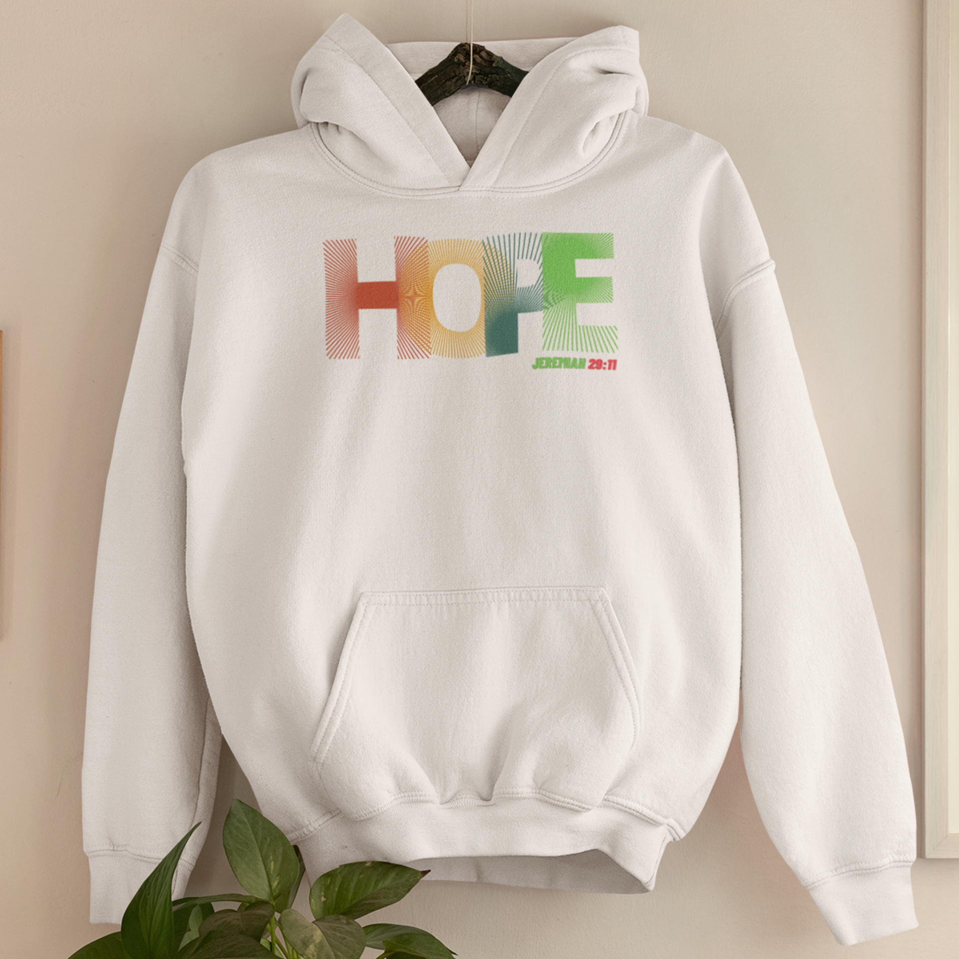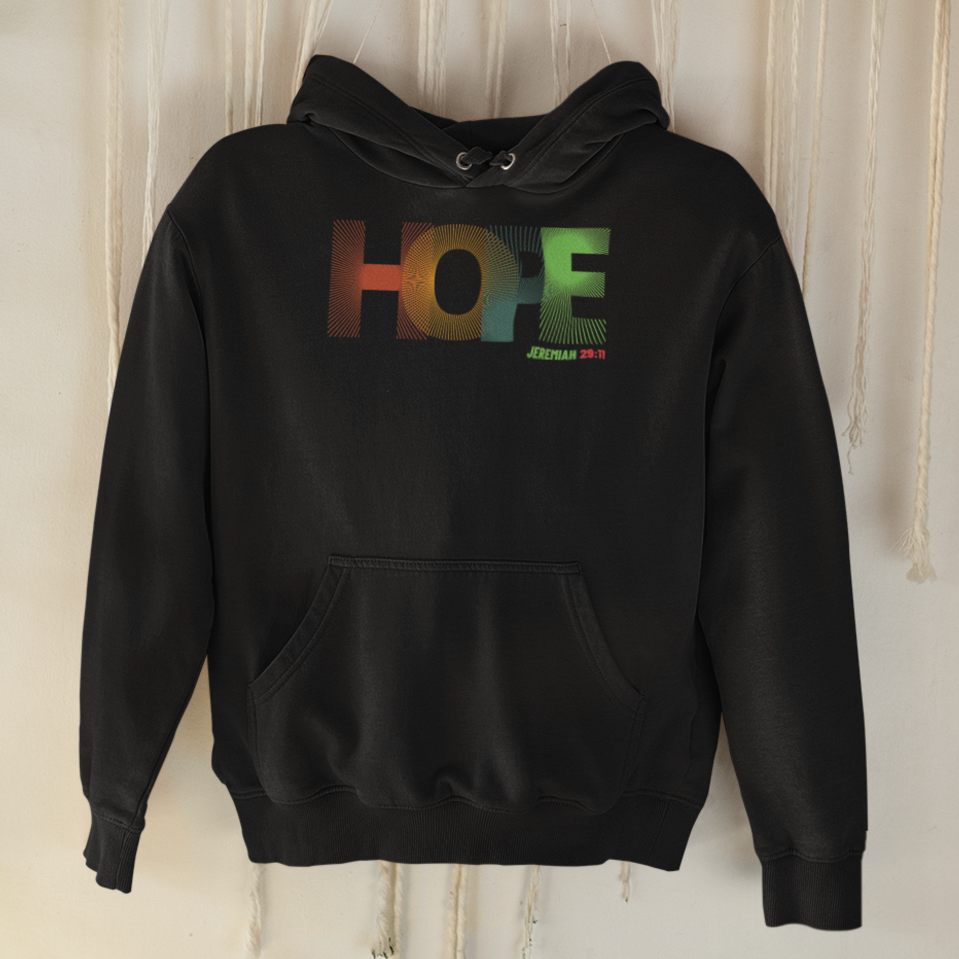 This unisex "Hope" t-shirt features a pleasing crew neck design and is adorned with the timeless bible verse, Jeremiah 29:11 - "For I know the plans I have for you," declares the Lord, "plans to prosper you and not to harm you, plans to give you hope and a future." Wear it proudly!