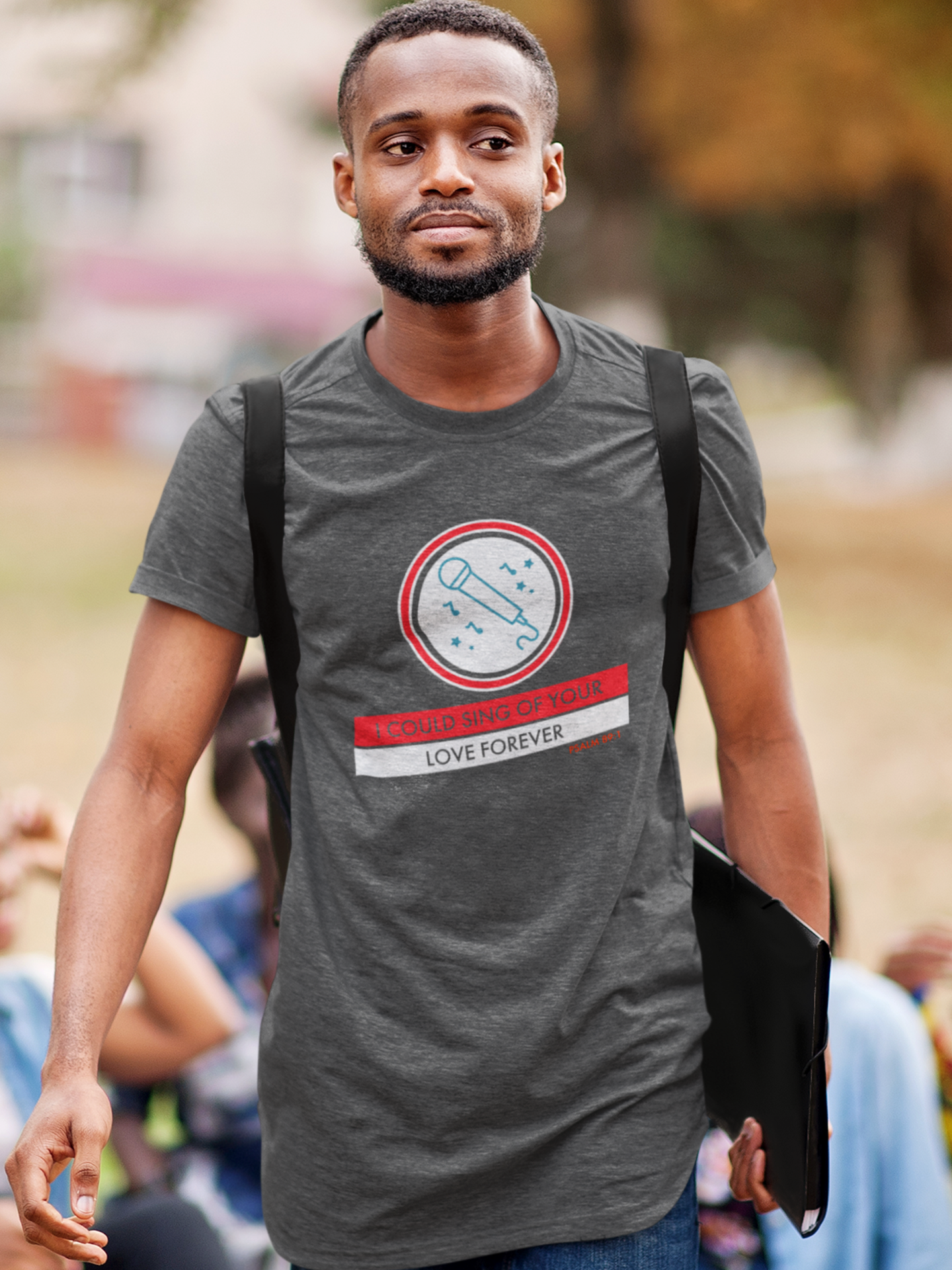 This soft, comfortable t-shirt is perfect for anyone who loves to sing and worship God. The shirt features the words "I Could Sing of Your Love Forever" in a stylish design. It is made from 100% cotton and is available in a variety of sizes and colors.