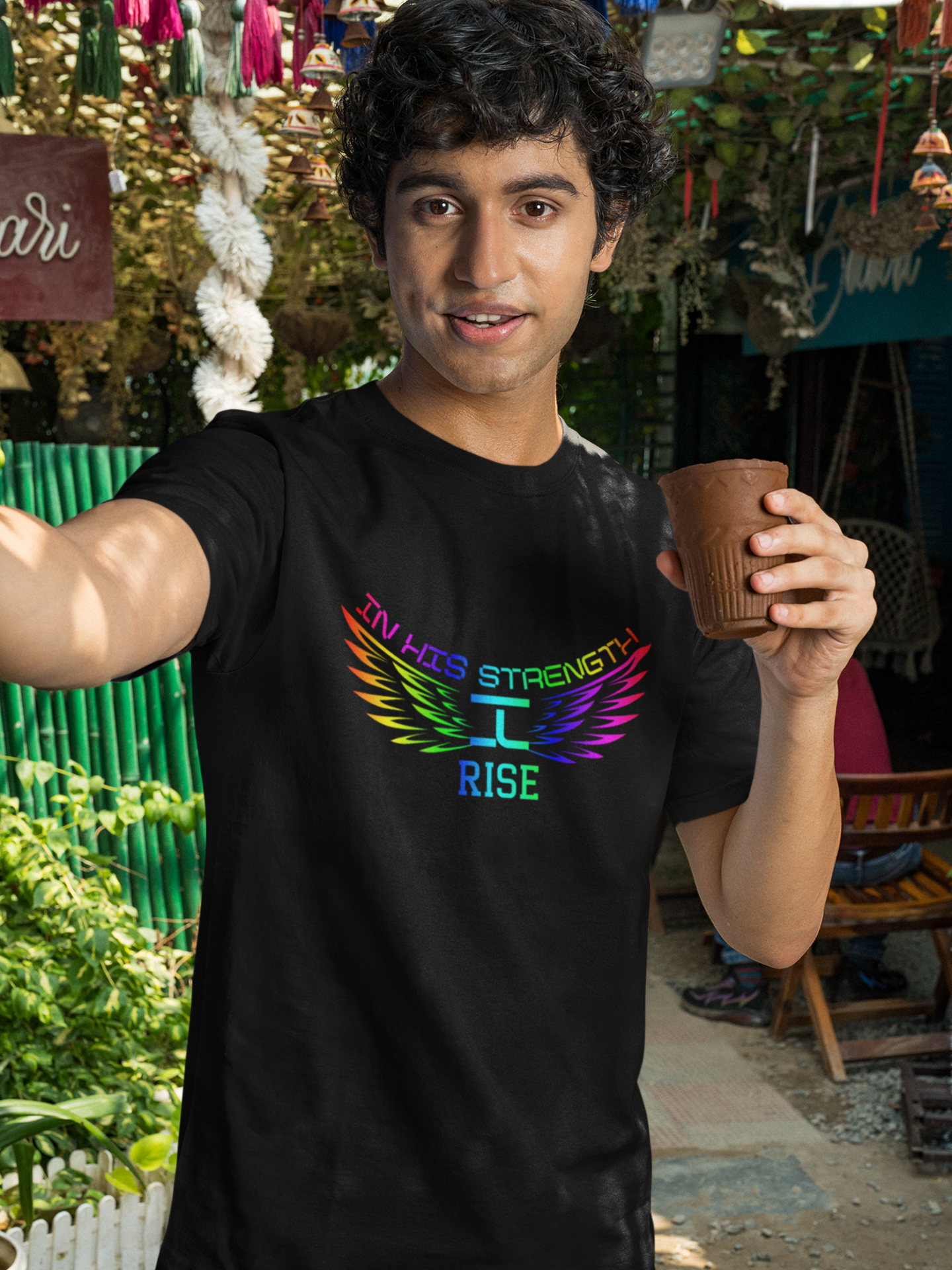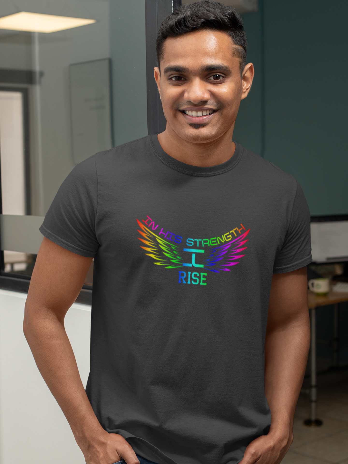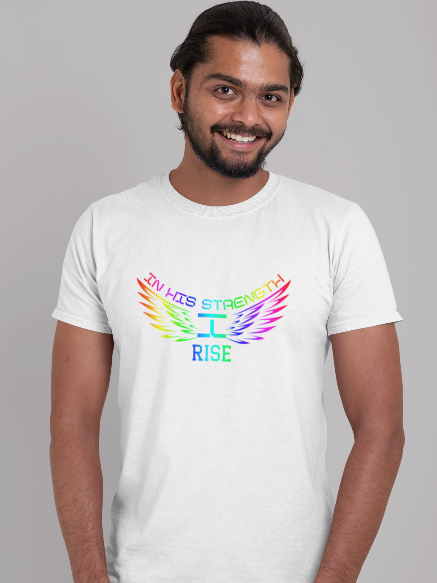 Introducing our "In His Strength, I Rise" Christian t-shirt, inspired by Isaiah 40:31. Made with love, this t-shirt reminds you of the incredible promise found in the verse. Crafted with comfort in mind, it features a soft and breathable fabric blend. The design showcases the empowering quote alongside wings, symbolizing renewed strength. With a stylish fit and classic colors, this t-shirt is a powerful reminder to trust in the Lord. Wear it proudly and draw inspiration from Isaiah 40:31, knowing that in His strength, you will rise above every challenge.