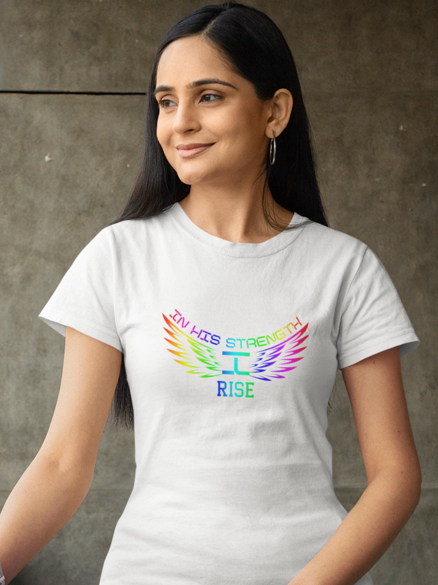 Introducing our "In His Strength, I Rise" Christian t-shirt, inspired by Isaiah 40:31. Made with love, this t-shirt reminds you of the incredible promise found in the verse. Crafted with comfort in mind, it features a soft and breathable fabric blend. The design showcases the empowering quote alongside wings, symbolizing renewed strength. With a stylish fit and classic colors, this t-shirt is a powerful reminder to trust in the Lord. Wear it proudly and draw inspiration from Isaiah 40:31, knowing that in His strength, you will rise above every challenge.