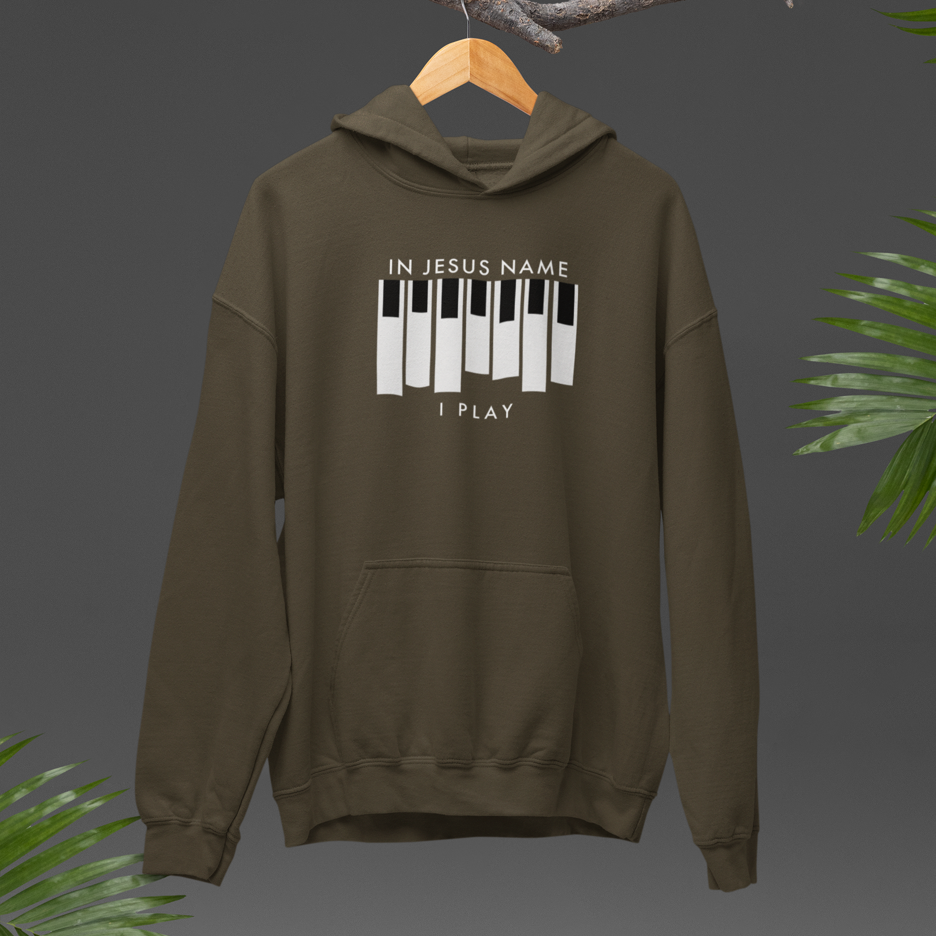 "In Jesus name I Play" unisex Christian hooded sweatshirt