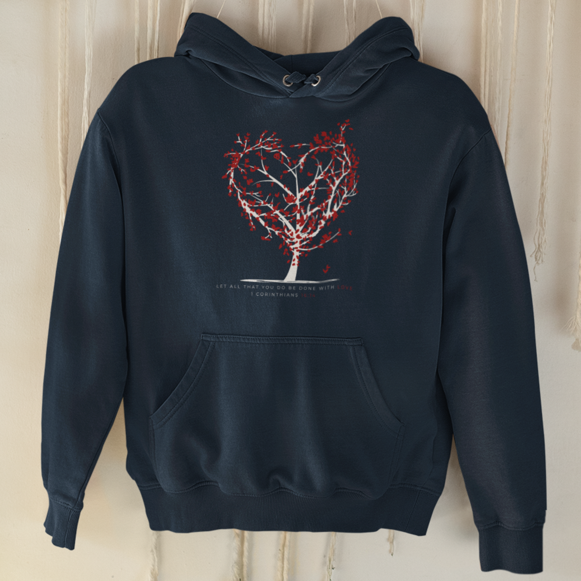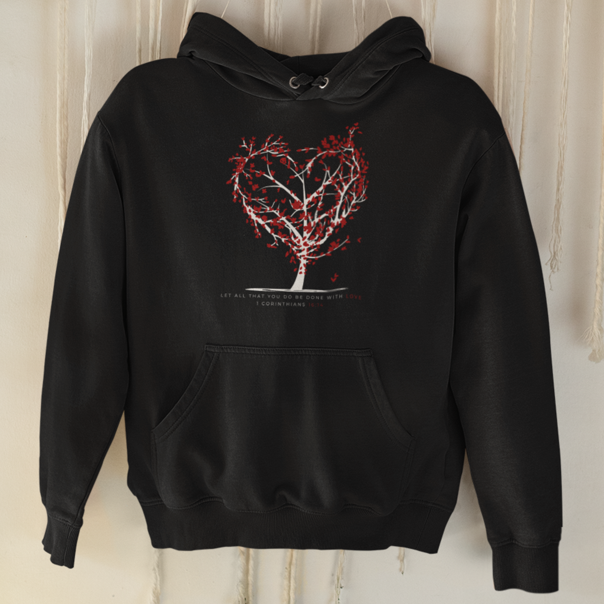 "Let all that you do be done in Love" unisex Christian hooded sweatshirt