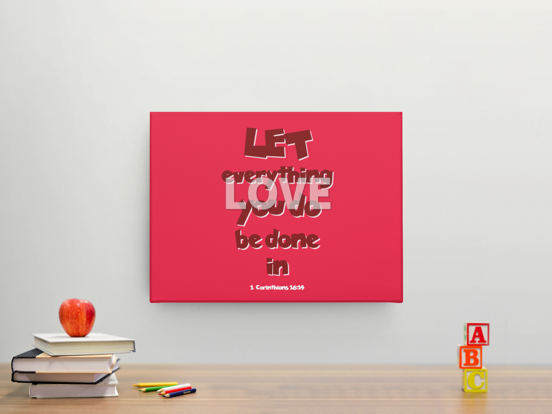 Paul says in 1 Corinthians 16:14, "Let everything you do be done in love." This inspirational canvas frame can be hung in the living room or bedroom. This will add a bit of style blended with a bible verse to your wall.