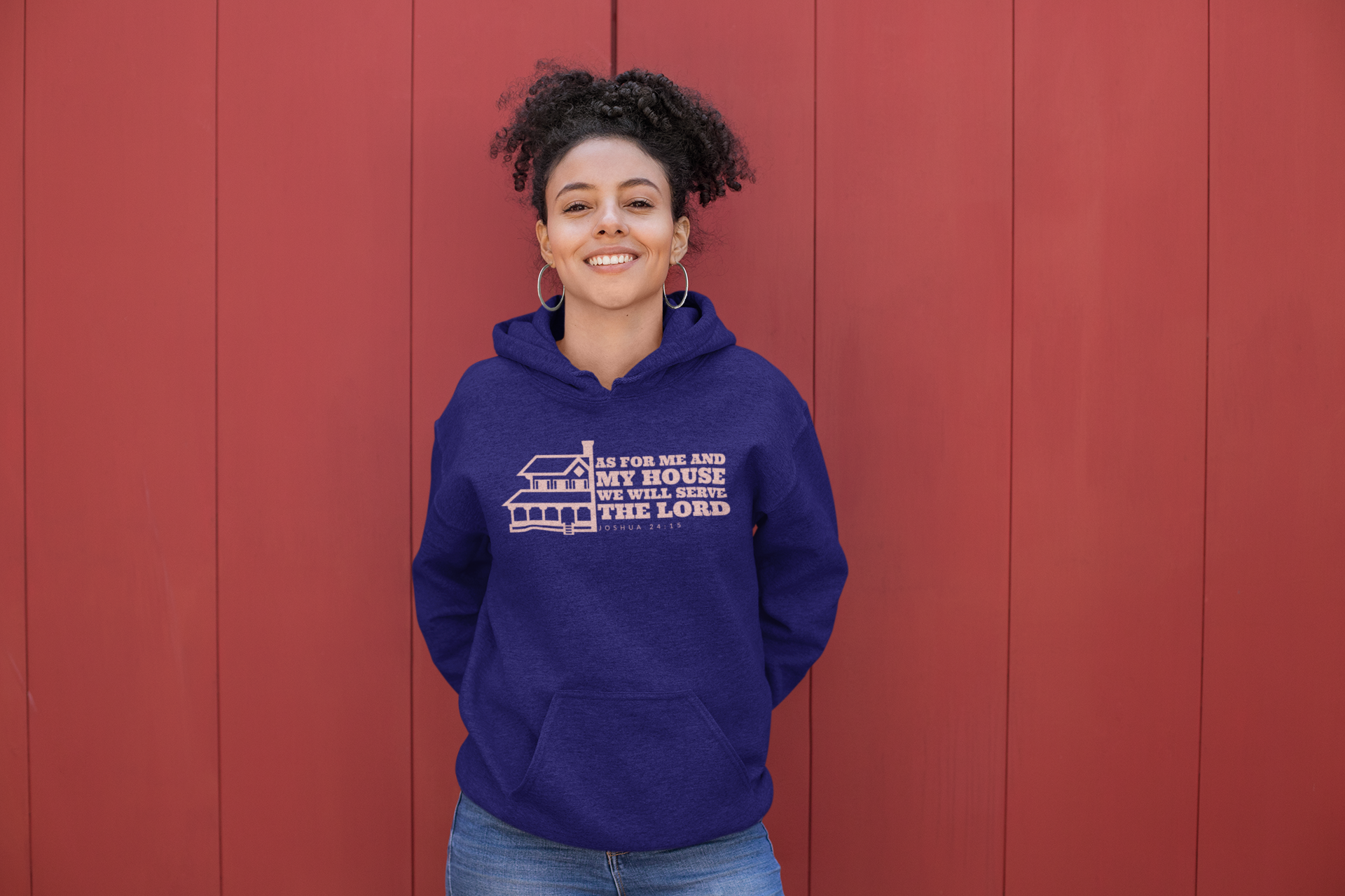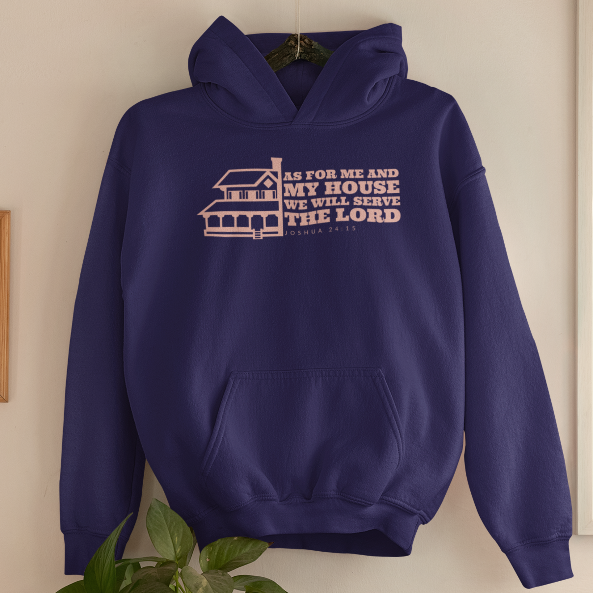Navy Blue "As for Me and My house We will serve the Lord" unisex christian hooded sweatshirt
