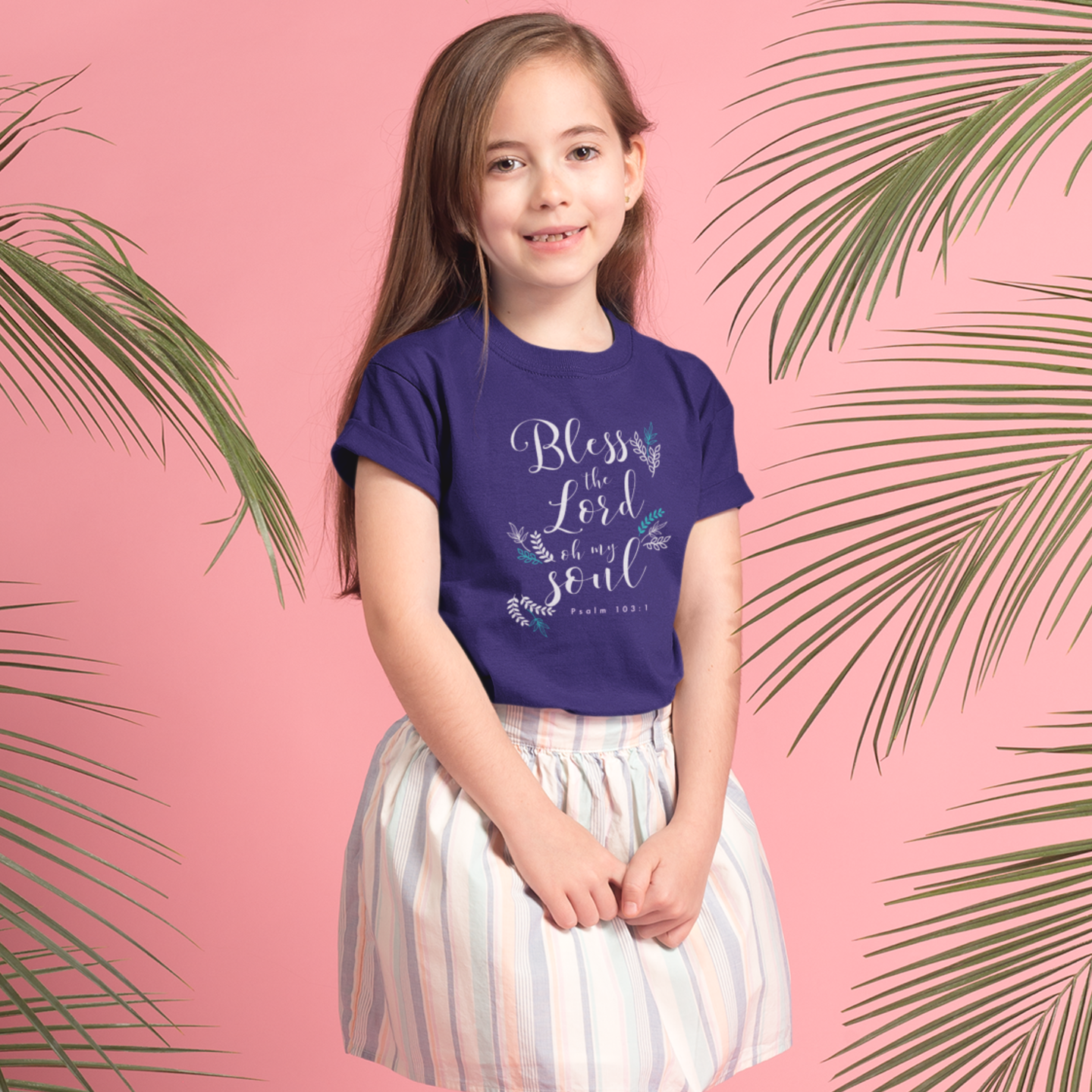 Navy Blue "Bless the Lord oh my soul" girls christian t-shirt