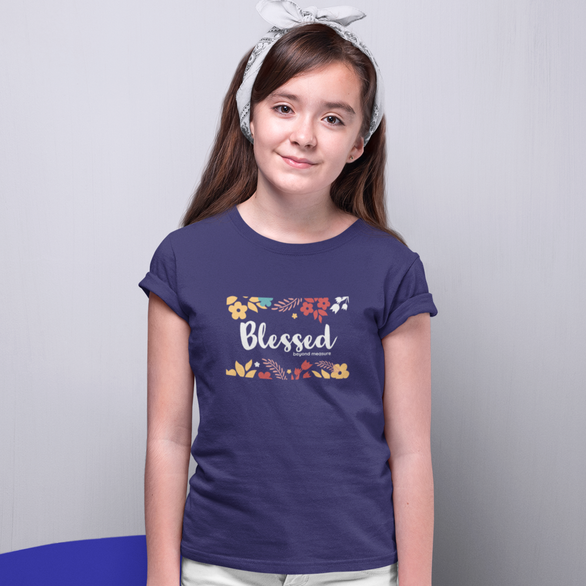 Navy blue "Blessed beyond measure" girls christian t-shirt