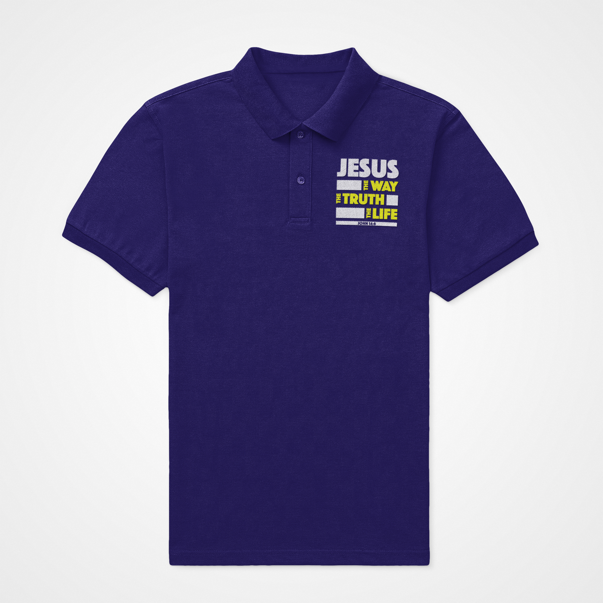 Navy Blue "Jesus - Way, Truth and Life" unisex christian polo t-shirt