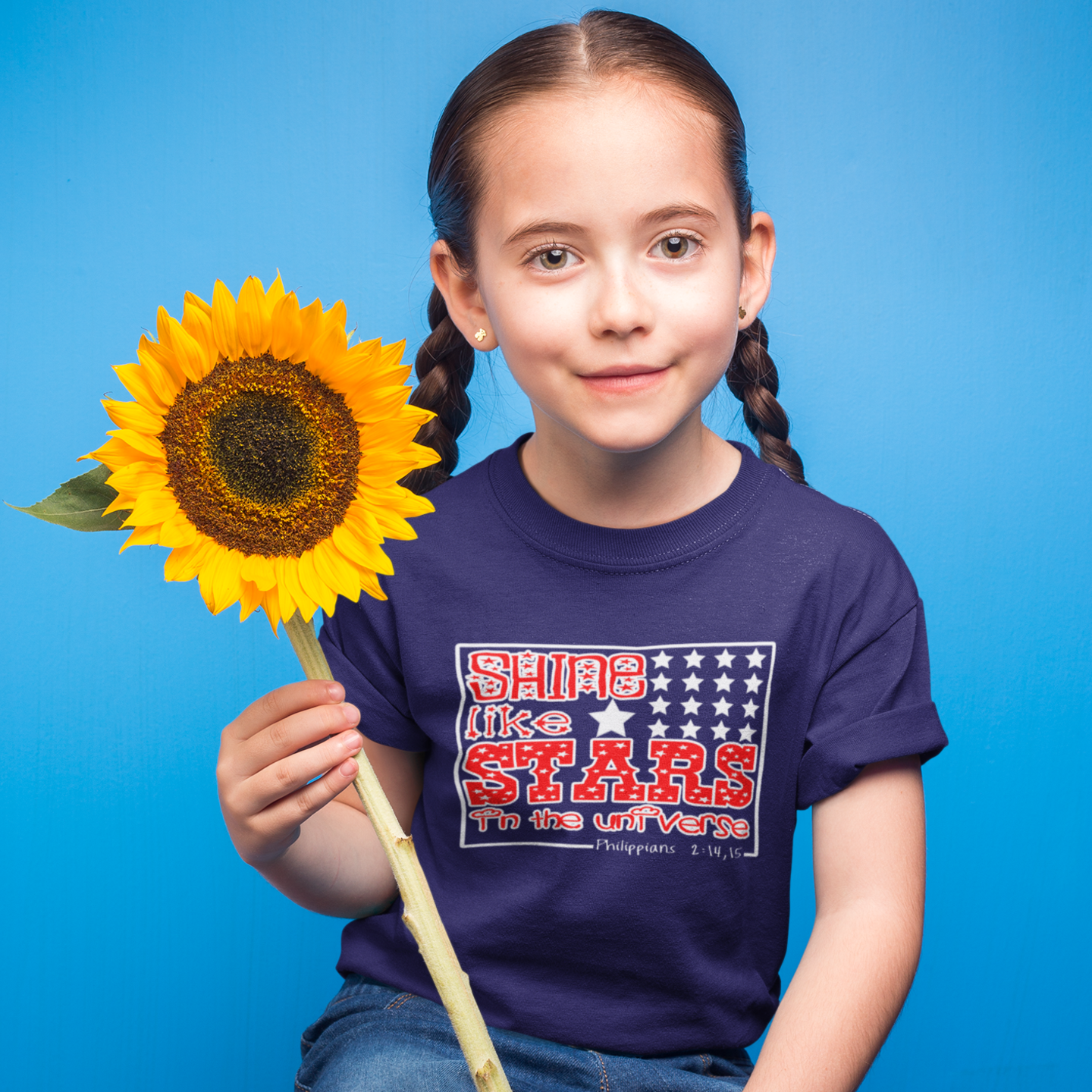 Navy Blue "Shine like stars in the universe" girls christian t-shirt