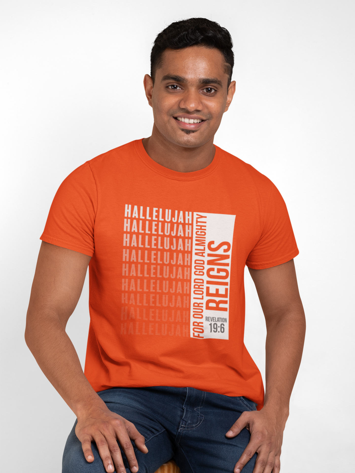 Orange "Hallelujah for our Lord God Almighty reigns" unisex christian t-shirt