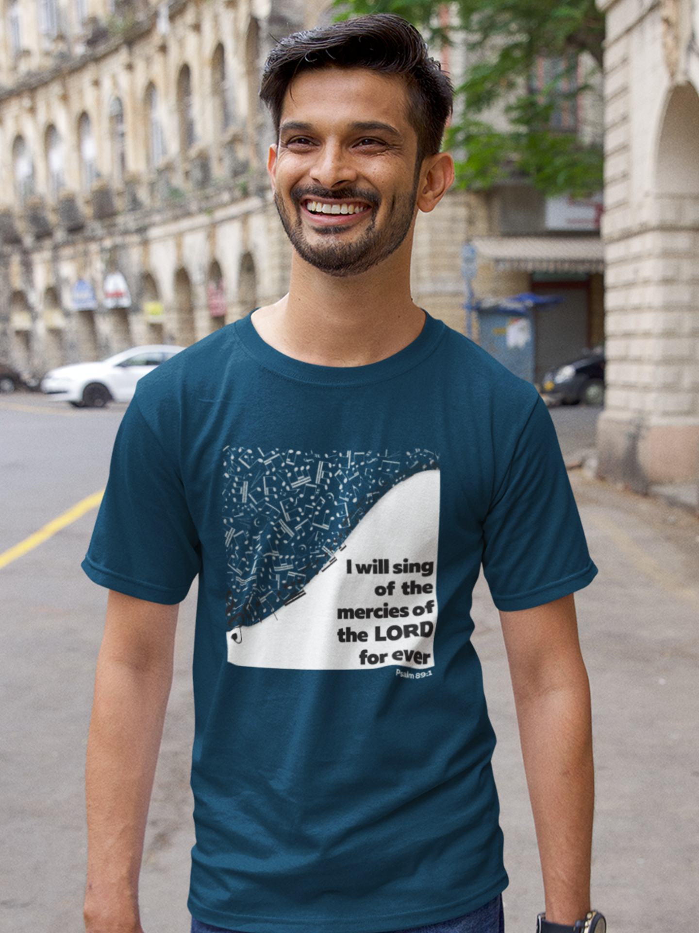 Petrol Blue "I will sing of the mercies of the LORD forever" unisex christian t-shirt