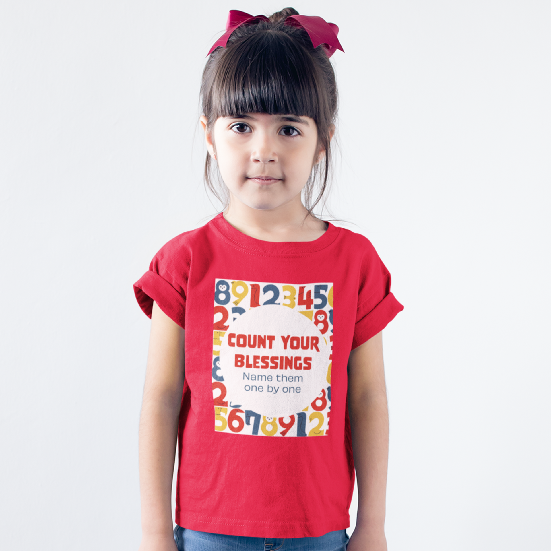 Red "Count your blessings" girls christian t-shirt
