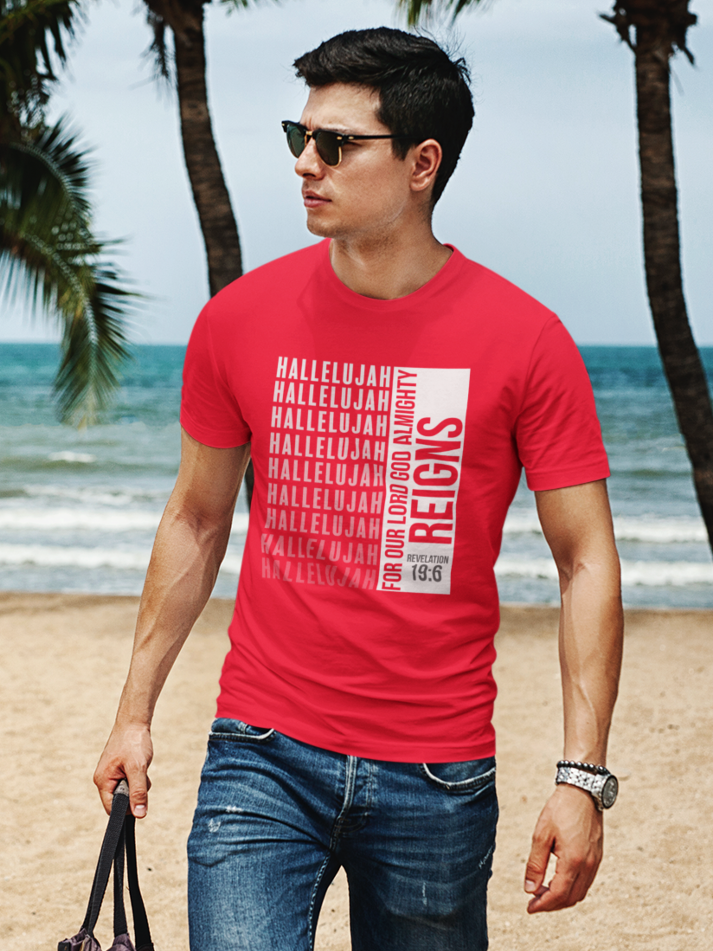 Red "Hallelujah for our Lord God Almighty reigns" unisex christian t-shirt