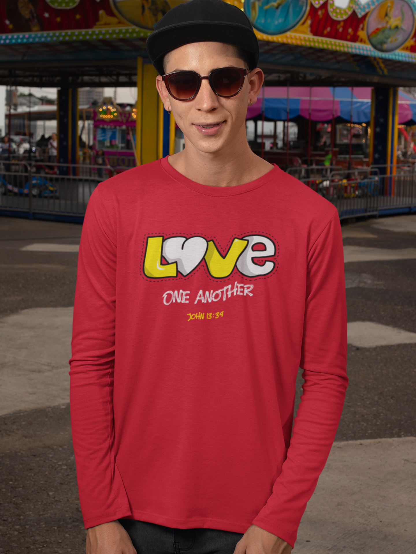 Red "Love one another" Men’s full sleeve Christian t-shirt