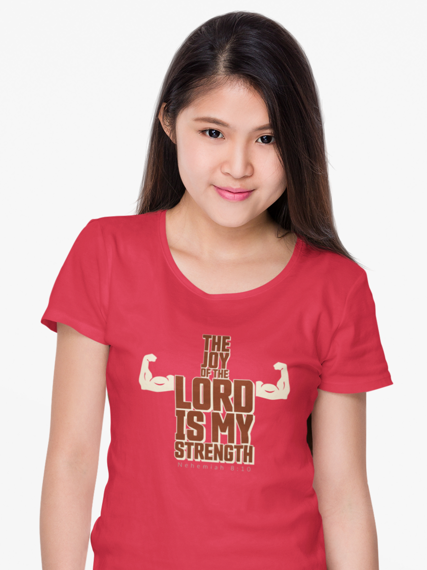 Red "The joy of the Lord is my strength" women's christian t-shirt
