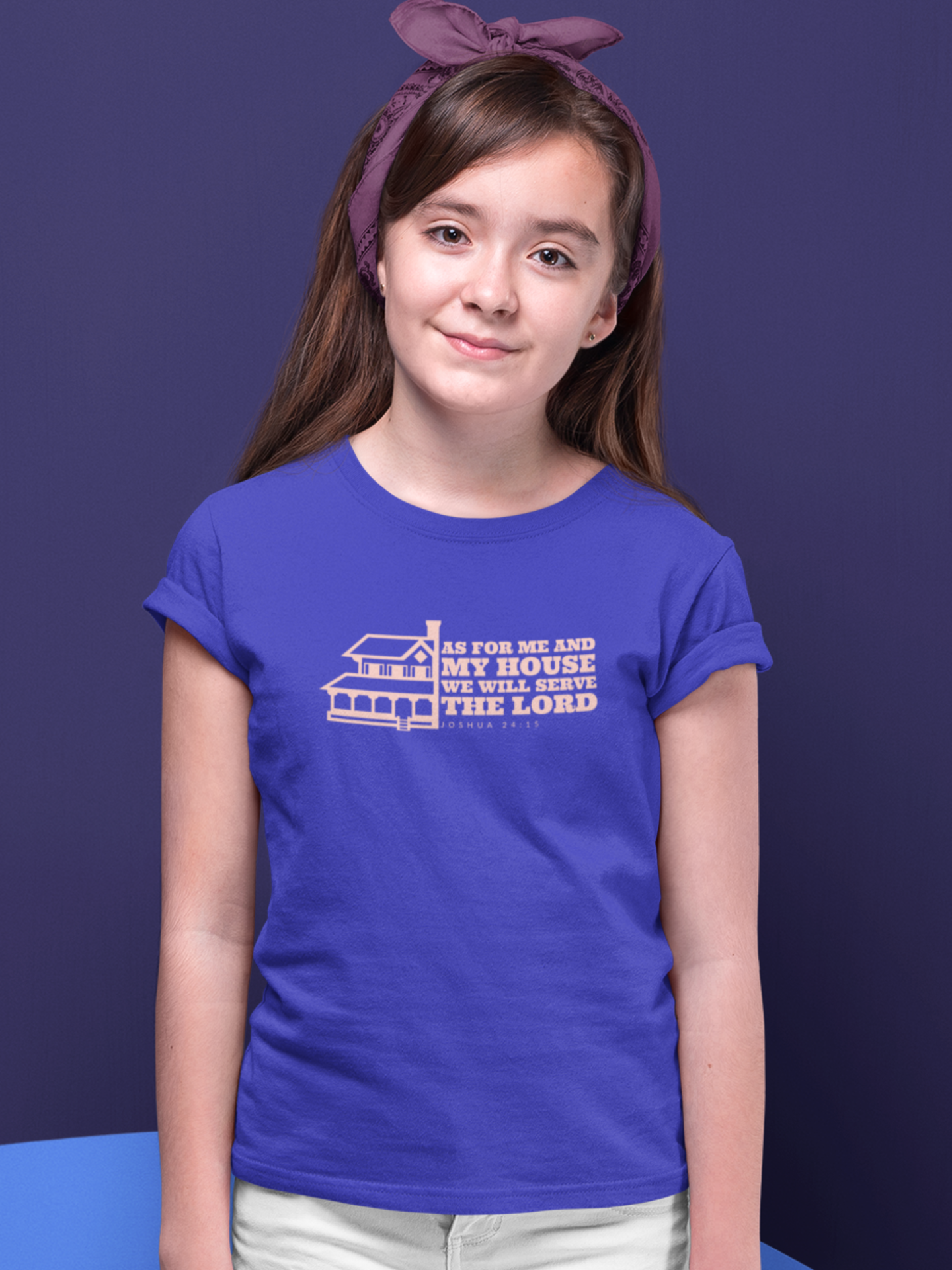 Royal blue "As for Me and My house We will serve the Lord" girls christian t-shirt