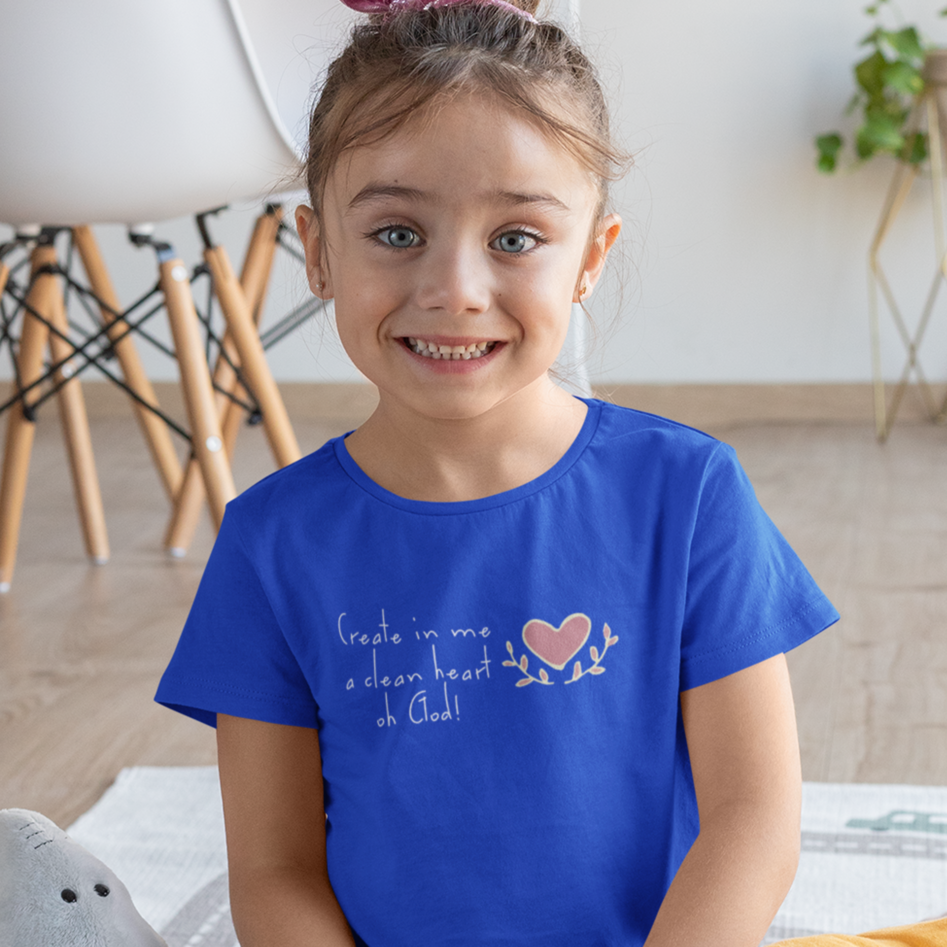 Royal Blue "Create in me a clean heart oh God" girls christian t-shirt
