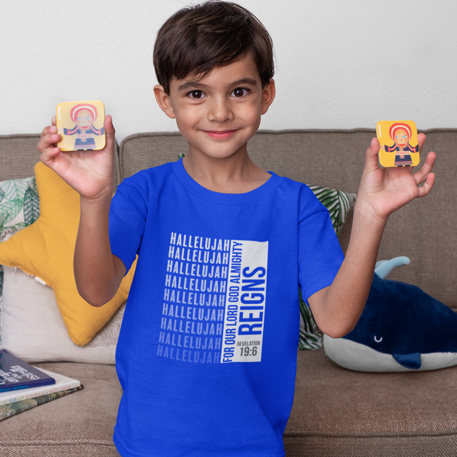 Jeena Susan Lijo Royal Blue "Hallelujah for our Lord God Almighty reigns" boys christian t-shirt