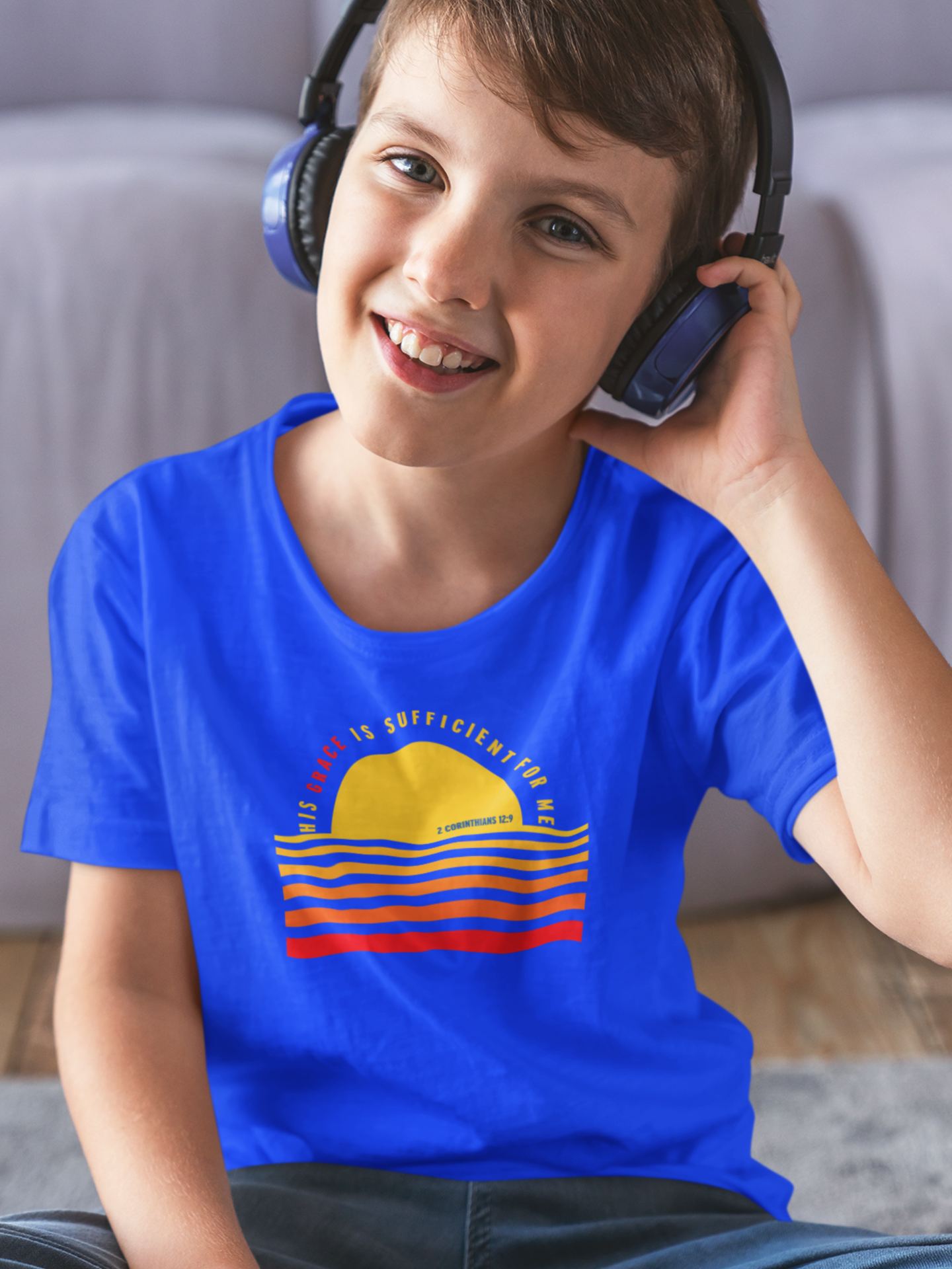 Royal blue "His grace is sufficient for me" boys christian t-shirt