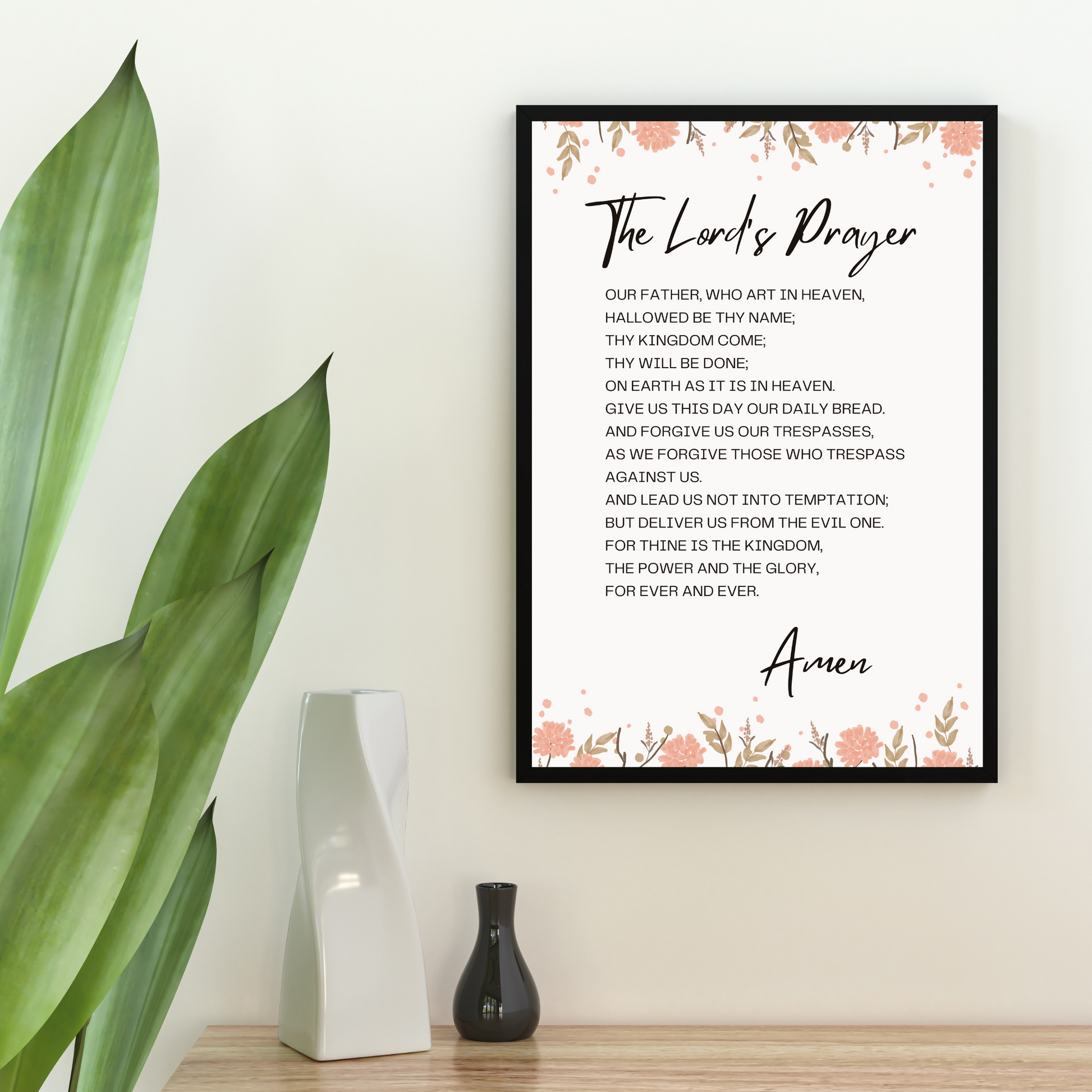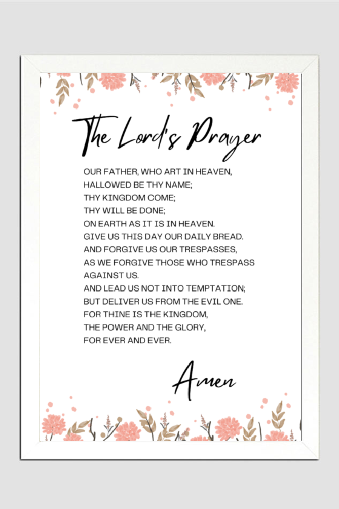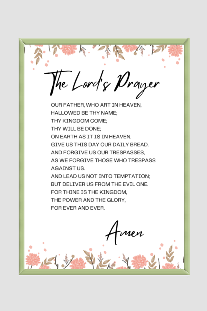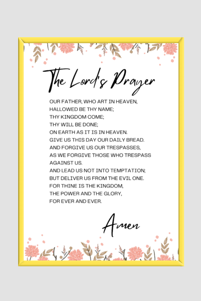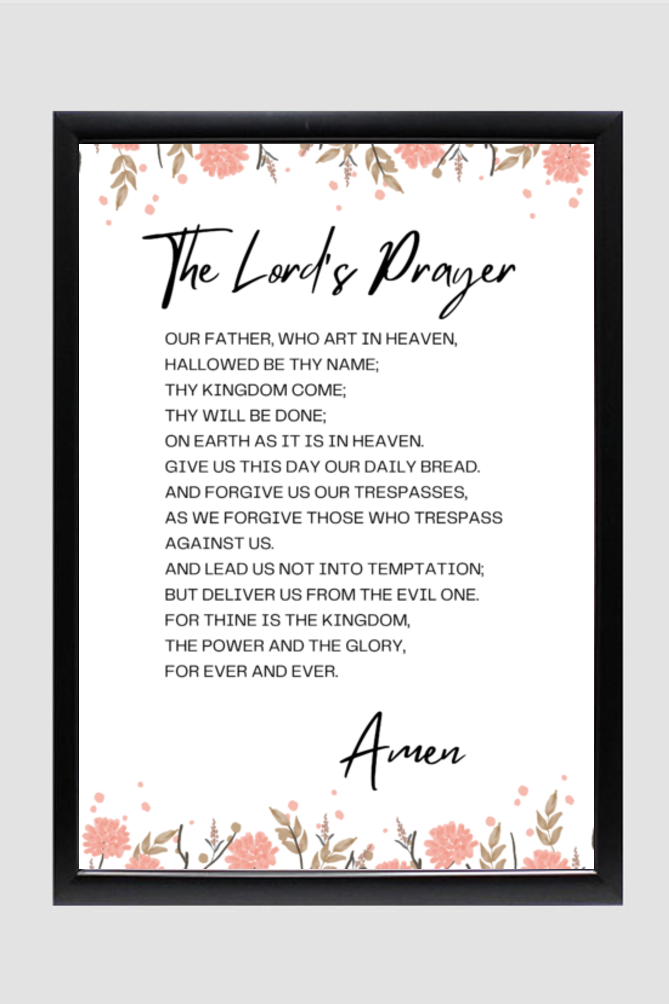 The "Lord's Prayer" is a timeless and powerful prayer that Jesus taught His disciples, encapsulating the essence of faith and devotion. This beautifully designed A3 size frame features the full text of the Lord's Prayer, making it a perfect addition to your home decor.