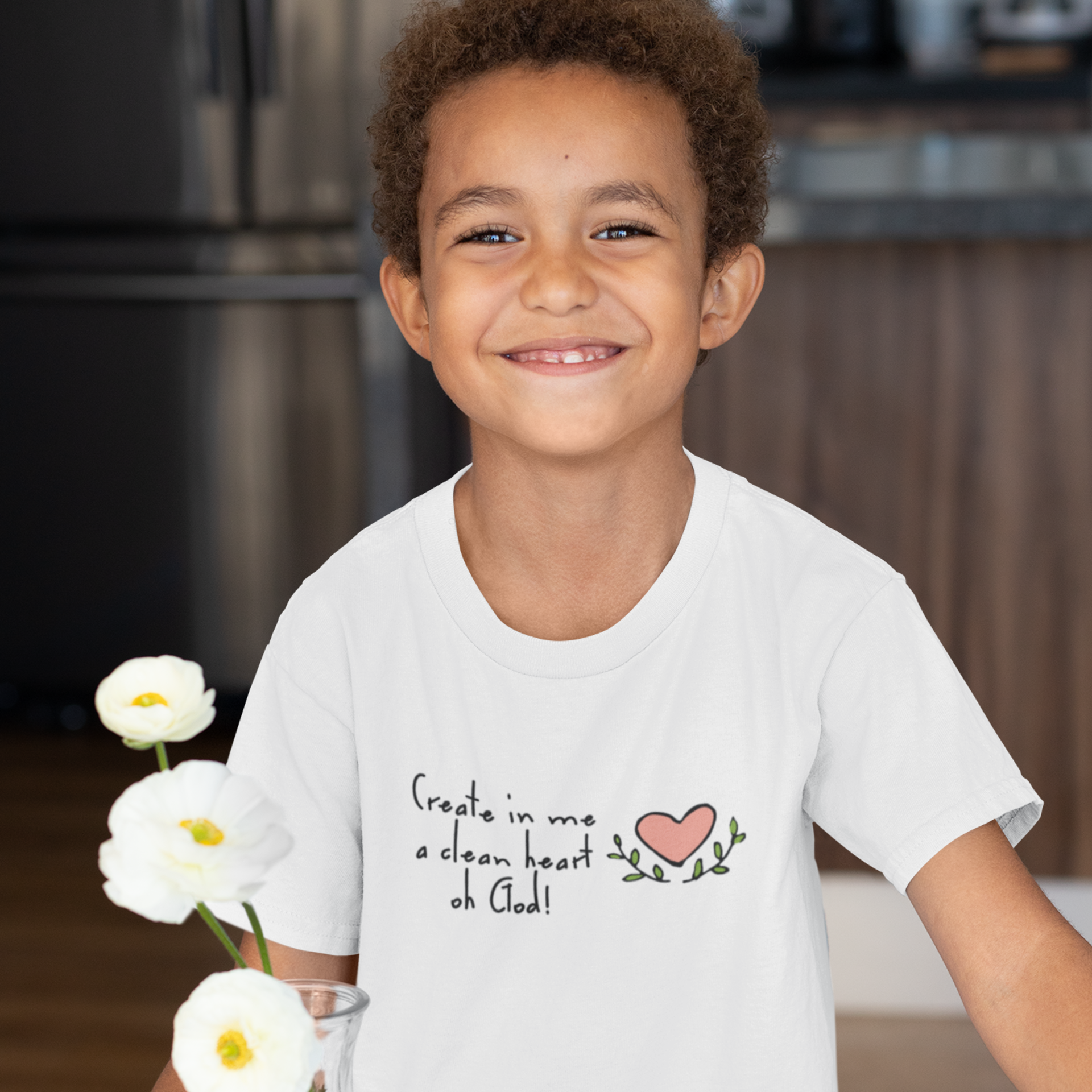 White "Create in me a clean heart oh God" boys christian t-shirt