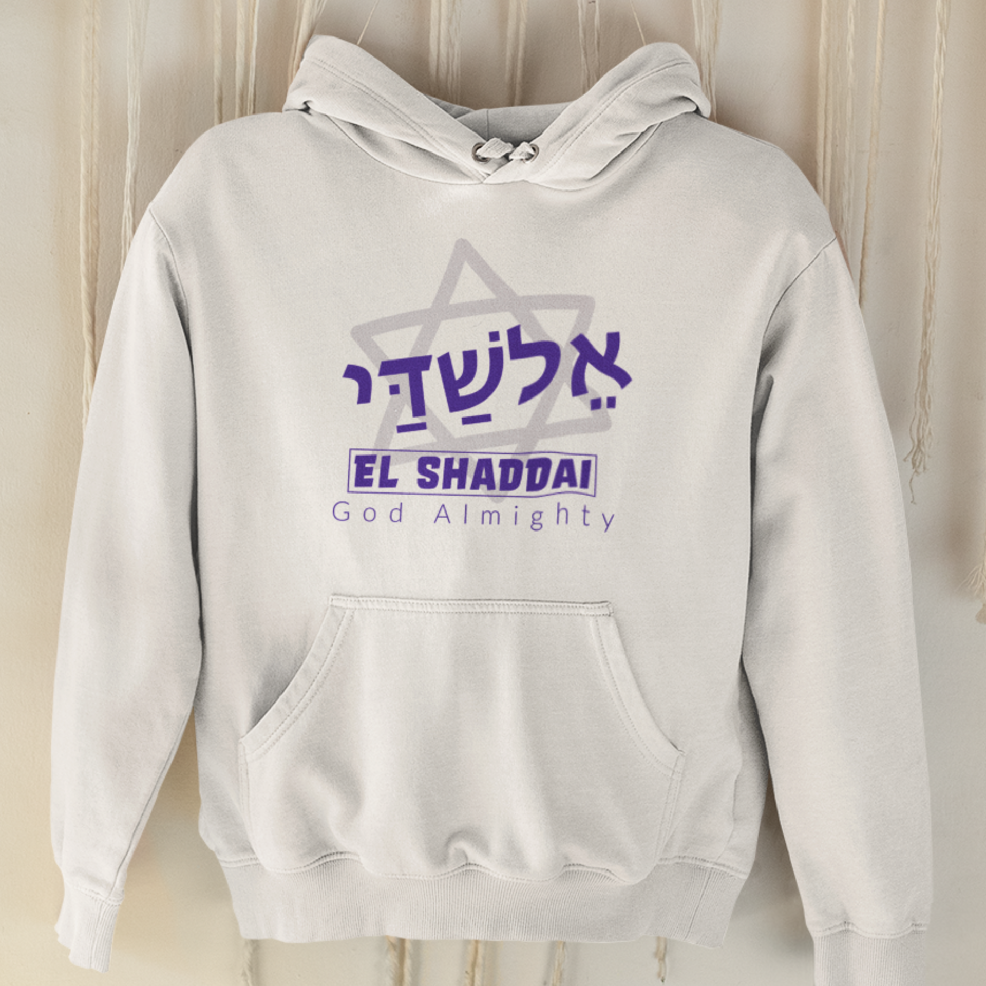 White "El Shaddai" hebrew unisex Christian hooded sweatshirt
