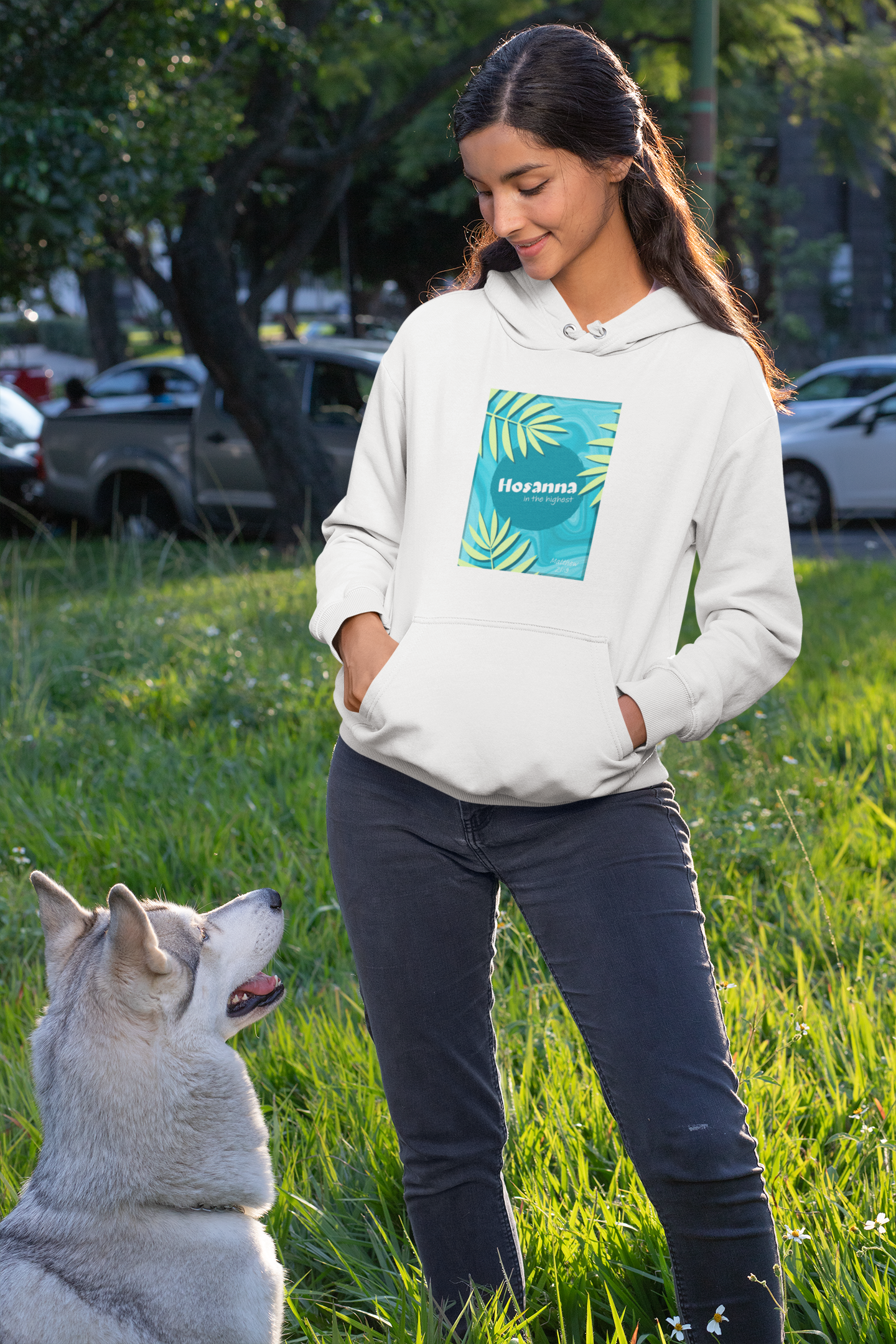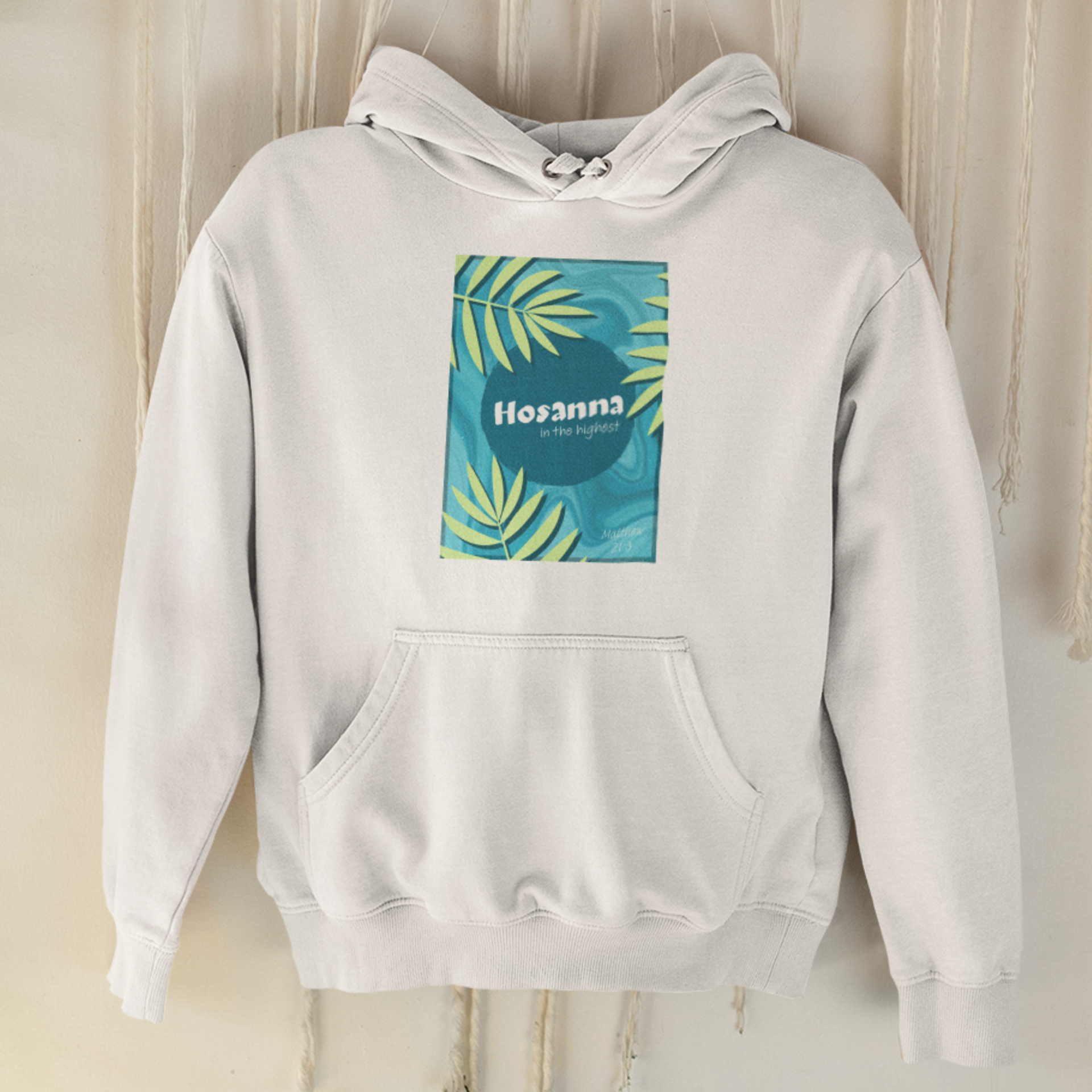 White "Hosanna in the highest" unisex Christian hooded sweatshirt