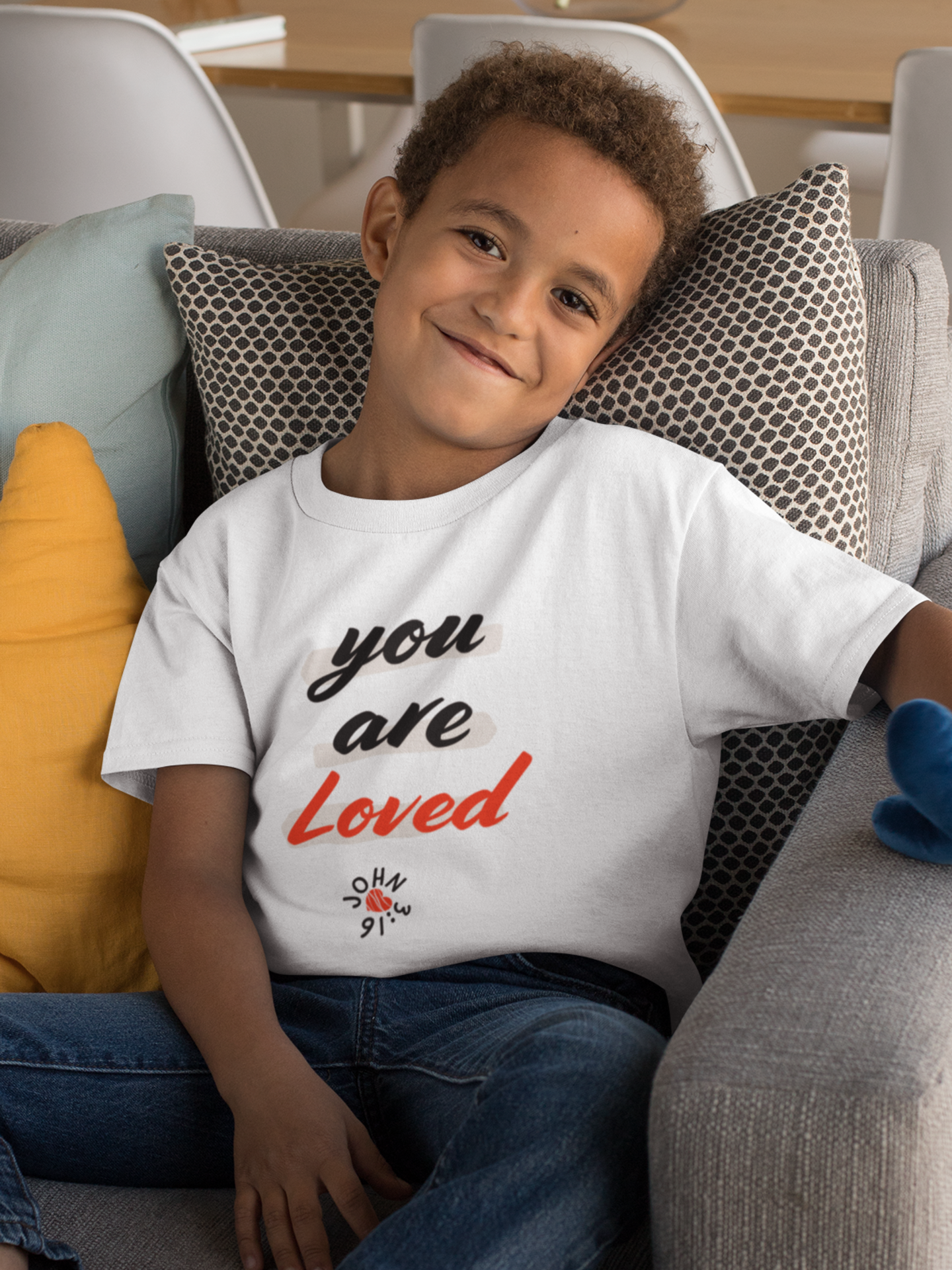 White "John 3:16 - You are Loved" boys christian t-shirt