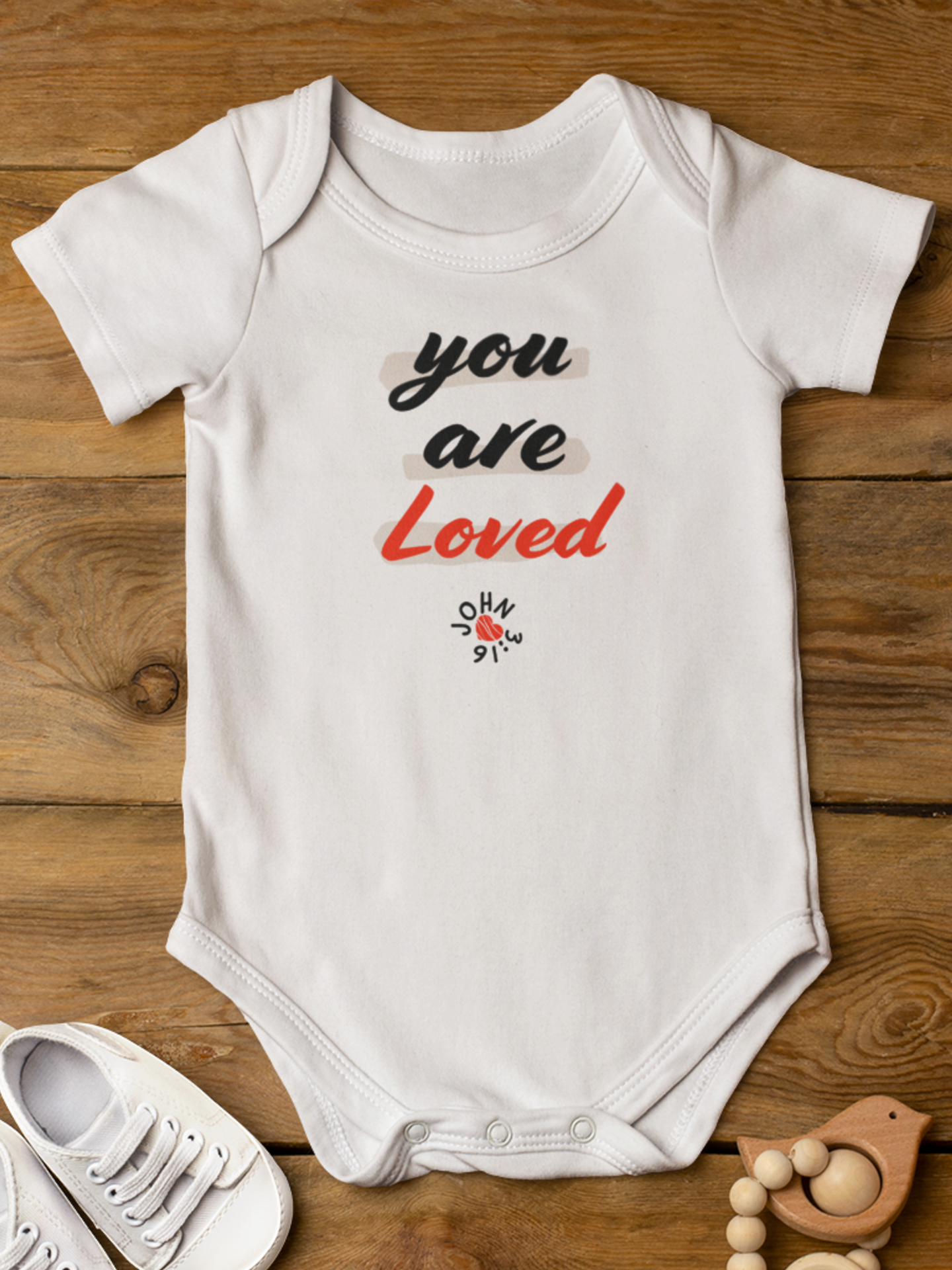White "John 3:16 - You are Loved" unisex baby onesie