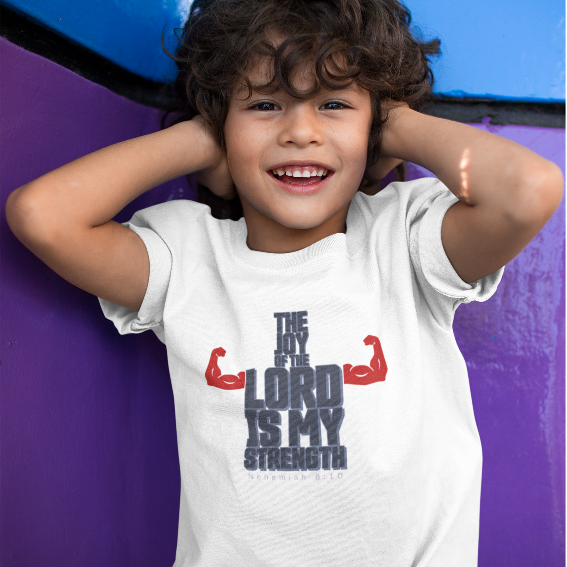 White "The joy of the Lord is my strength" boys christian t-shirt
