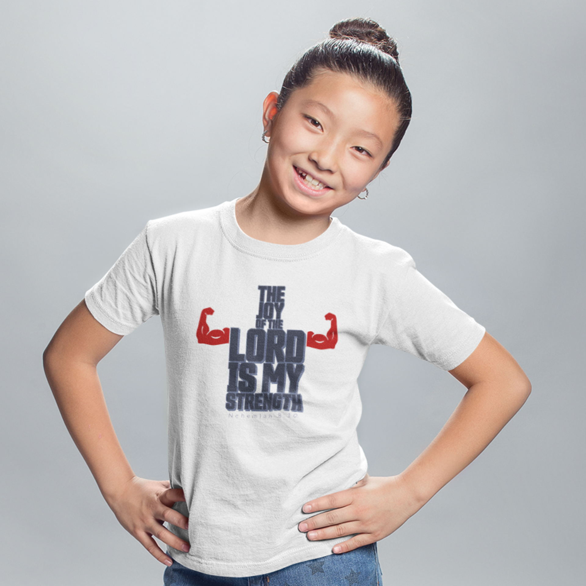 White "The joy of the Lord is my strength" girls christian t-shirt