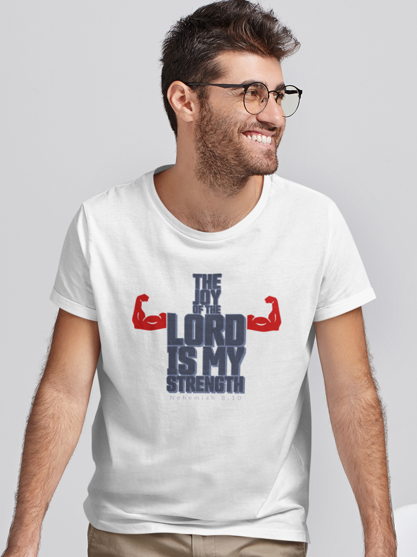 White "The joy of the Lord is my strength" unisex christian t-shirt