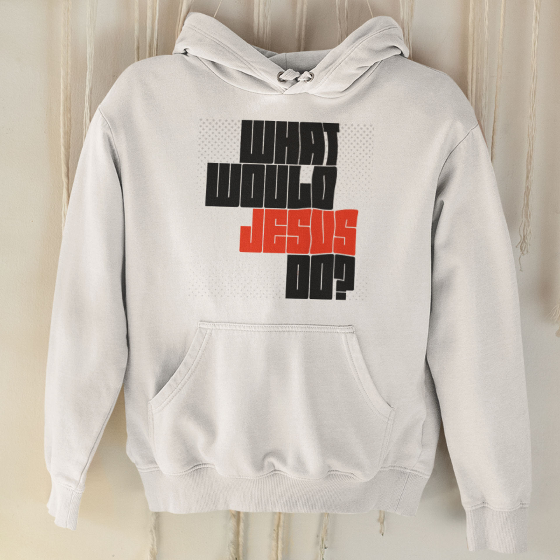 White "What would Jesus do?" unisex christian hooded sweatshirt